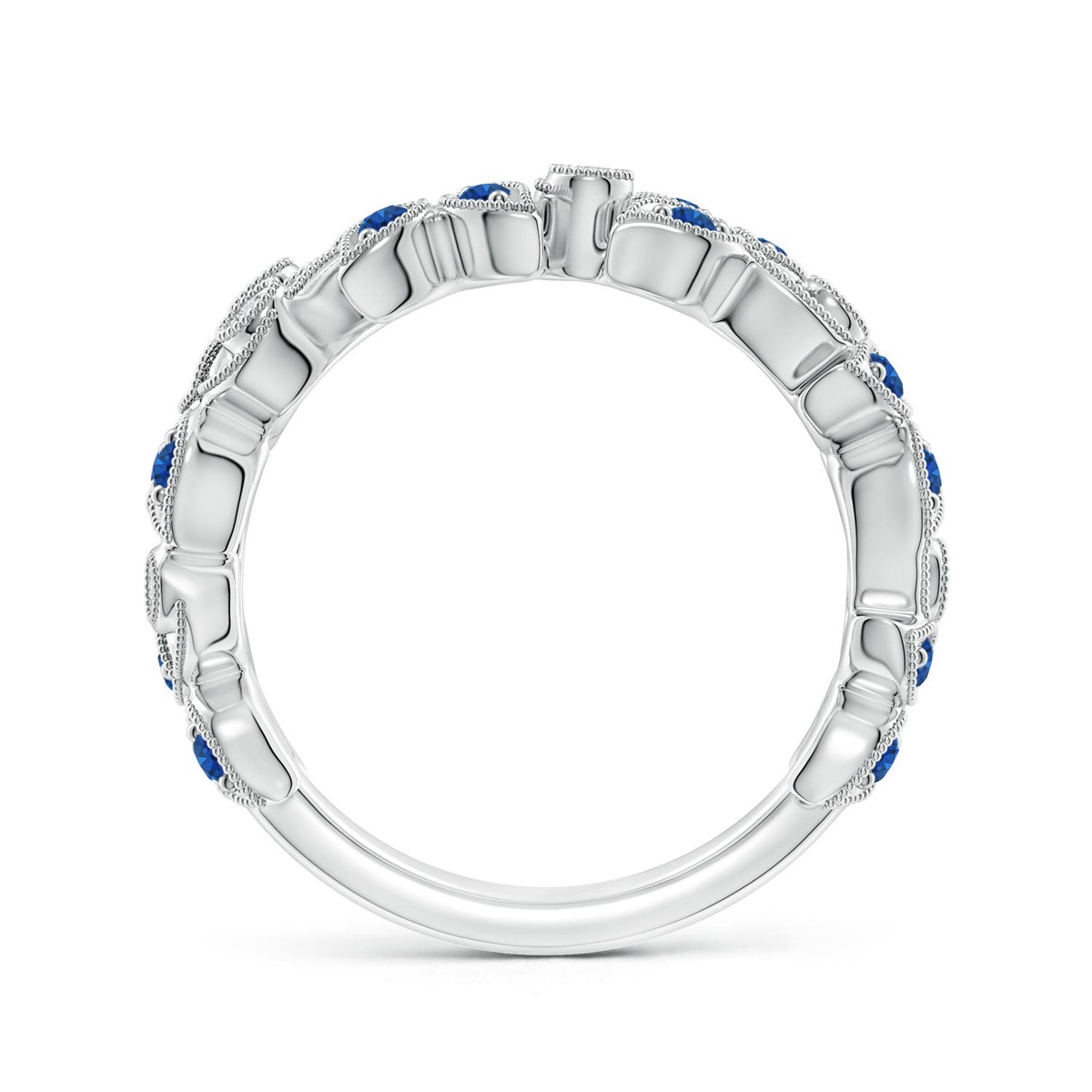 This wedding band showcases a nature inspired design and is adorned with pave-set blue sapphires and bezel-set diamonds. Milgrain detailing on the edges lends a touch of intricacy to this vine wedding ring crafted in 14k Gold.