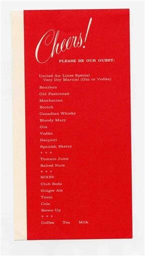 United Airlines Cheers! First Class Drinks Menu Please Be Our Guest