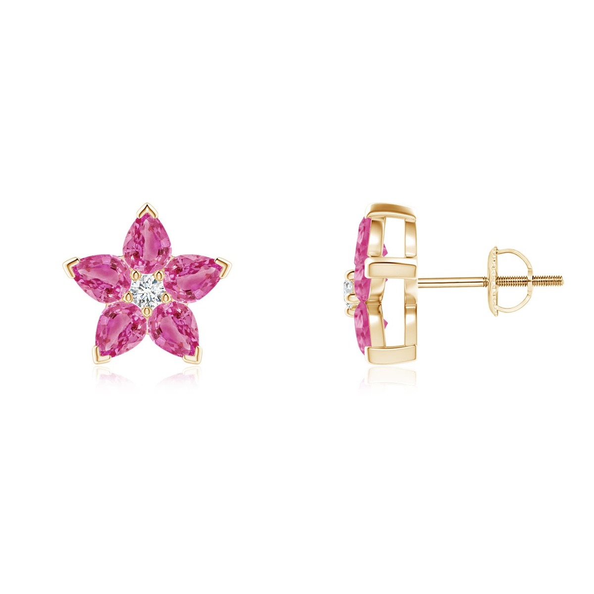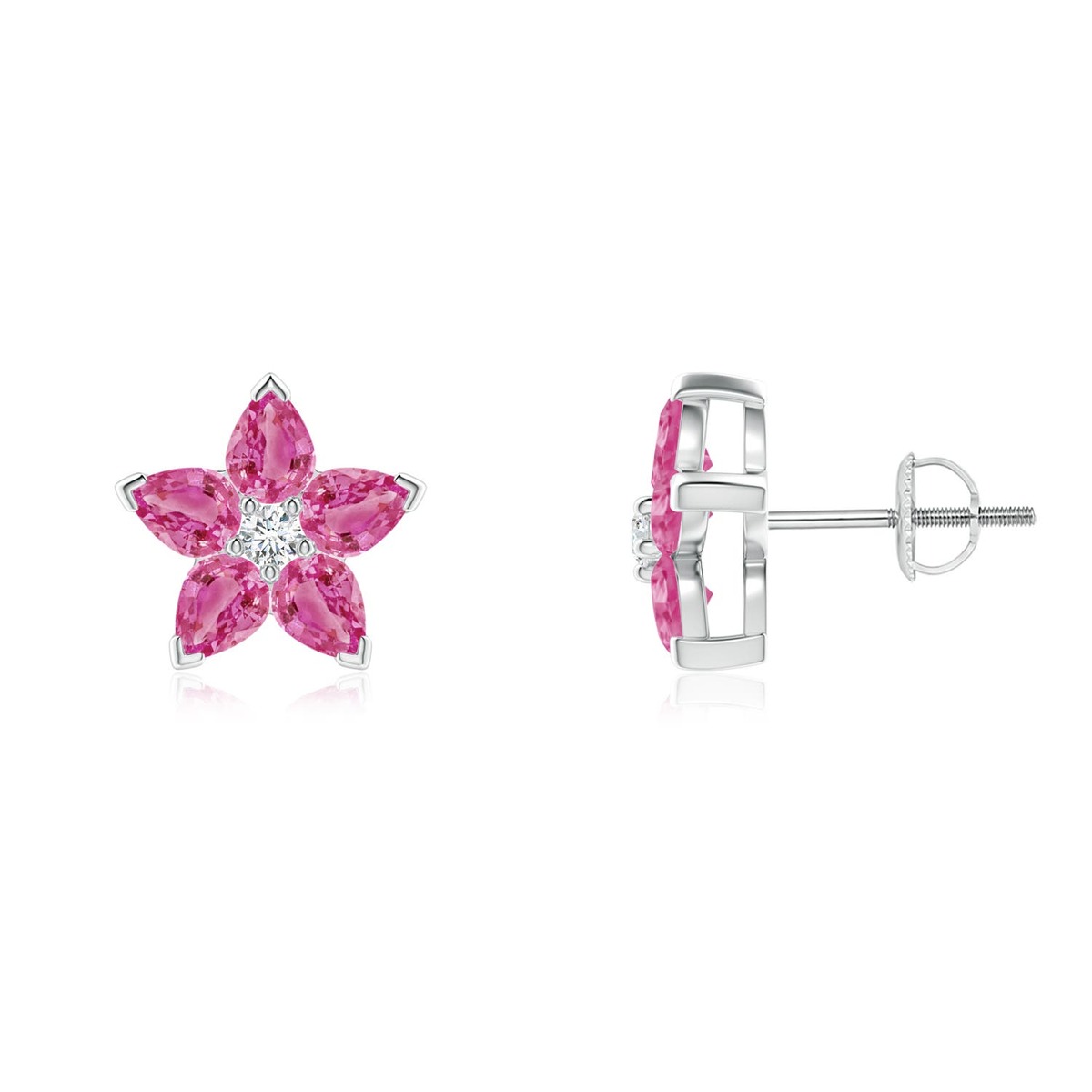 ANGARA 1.77 Ct V-Pink Sapphire & Diamond Flower Stud Earrings in 14K Gold