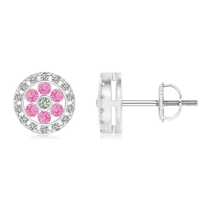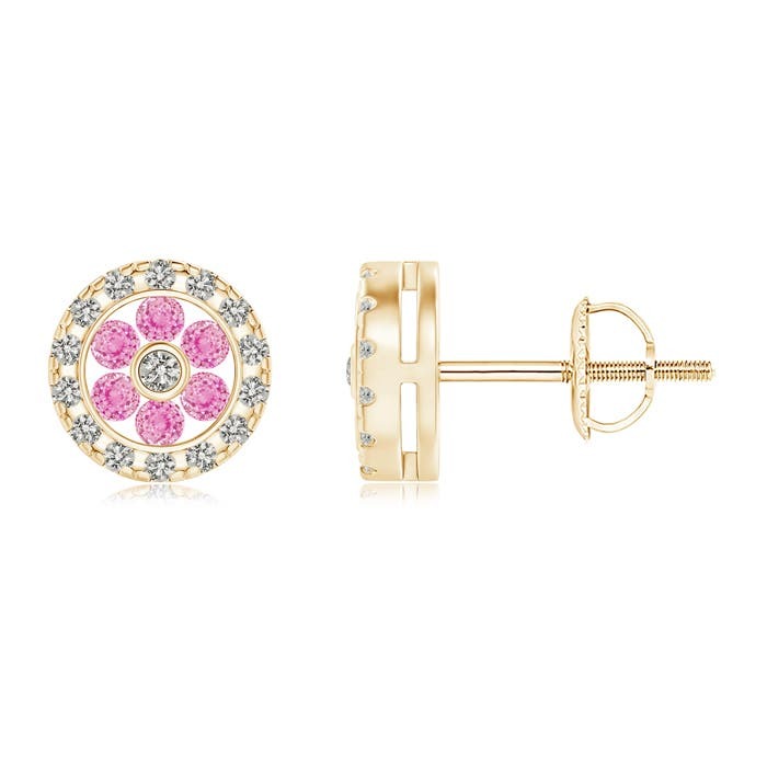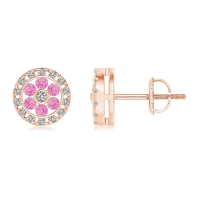 ANGARA Natural 0.34 Ct Pink Sapphire Flower Studs with Diamond Halo in 14K Gold