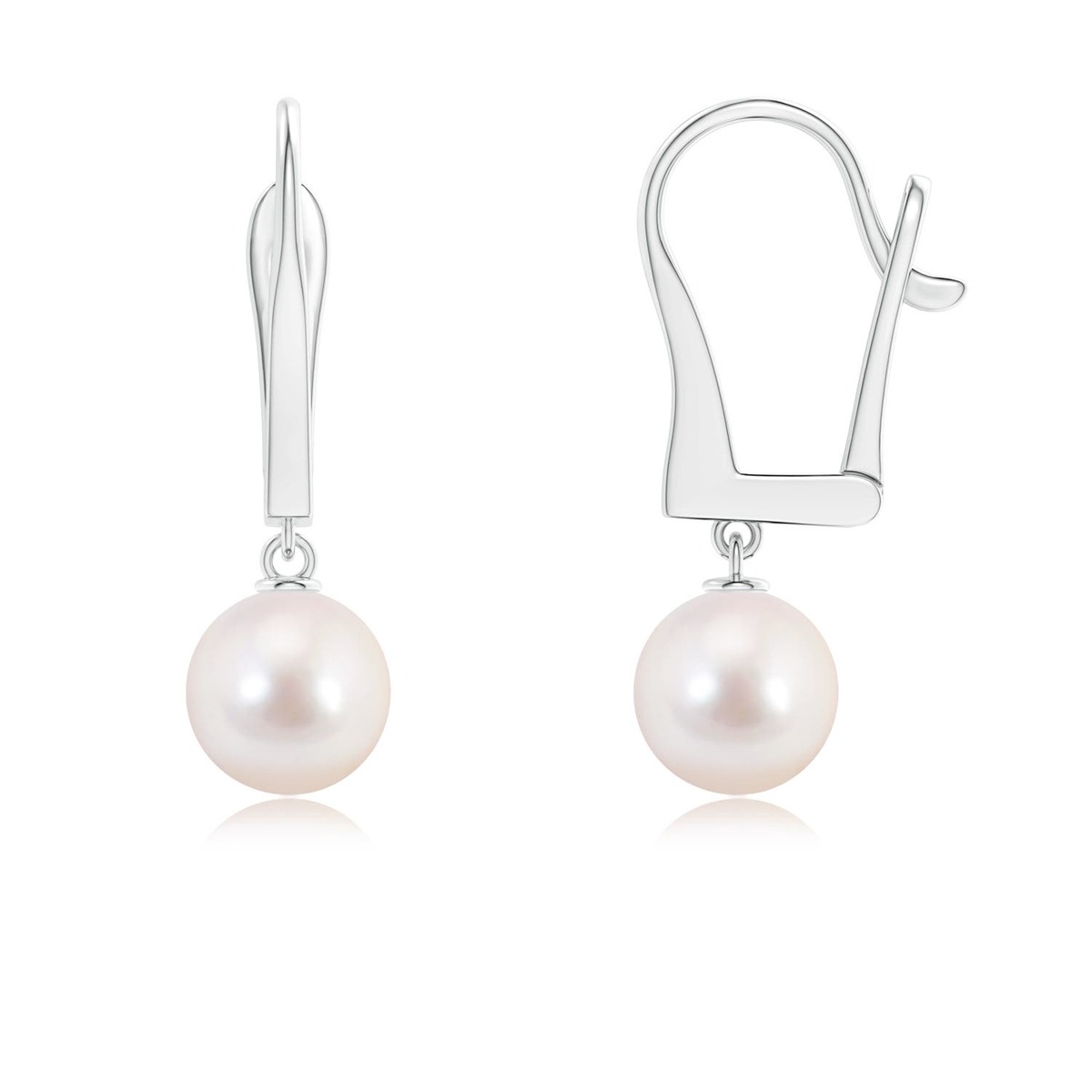 ANGARA Japanese Akoya Pearl Leverback Dangle Earrings 14K Gold (AAAA, 7mm)