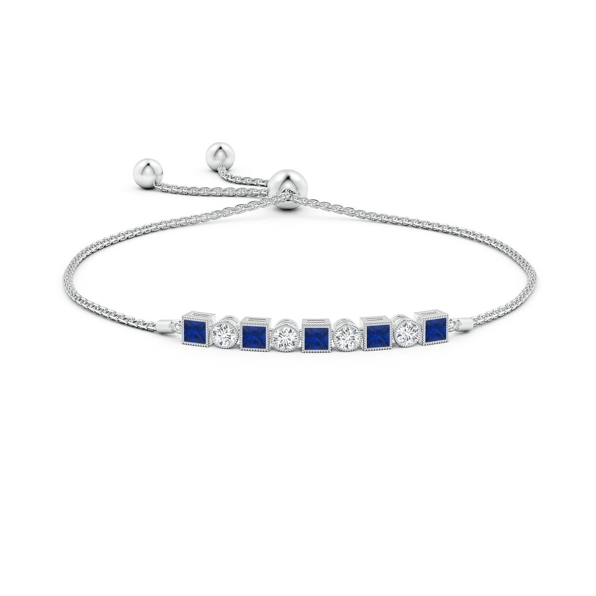 ANGARA 1.37 Ct Square Sapphire and Round Diamond Bolo Bracelet in 14K Solid Gold
