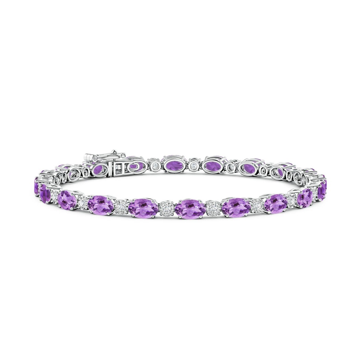 ANGARA 8.42 Ct Oval Natural Amethyst Tennis Bracelet with Diamonds in 14K Gold