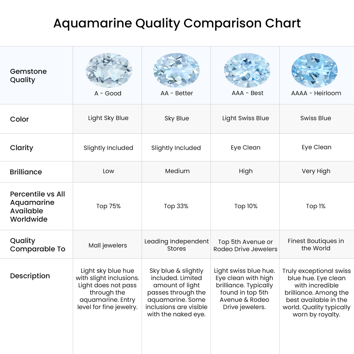 Aquamarine exudes a soothing charm that captivates from the very first glance. This icy blue gem symbolizes peace, clarity, hope and balance, and is the official birthstone for March. Plus, it holds a special place as the traditional gemstone for the 19th wedding anniversary.