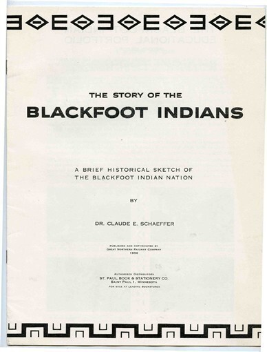 A 12 page booketl with NO addtional color pictures. The Story of the Blackfoot Indians Historical Sketch by Dr Claude E Schaeffer . Published by the Great Northern Railroad in 1958
