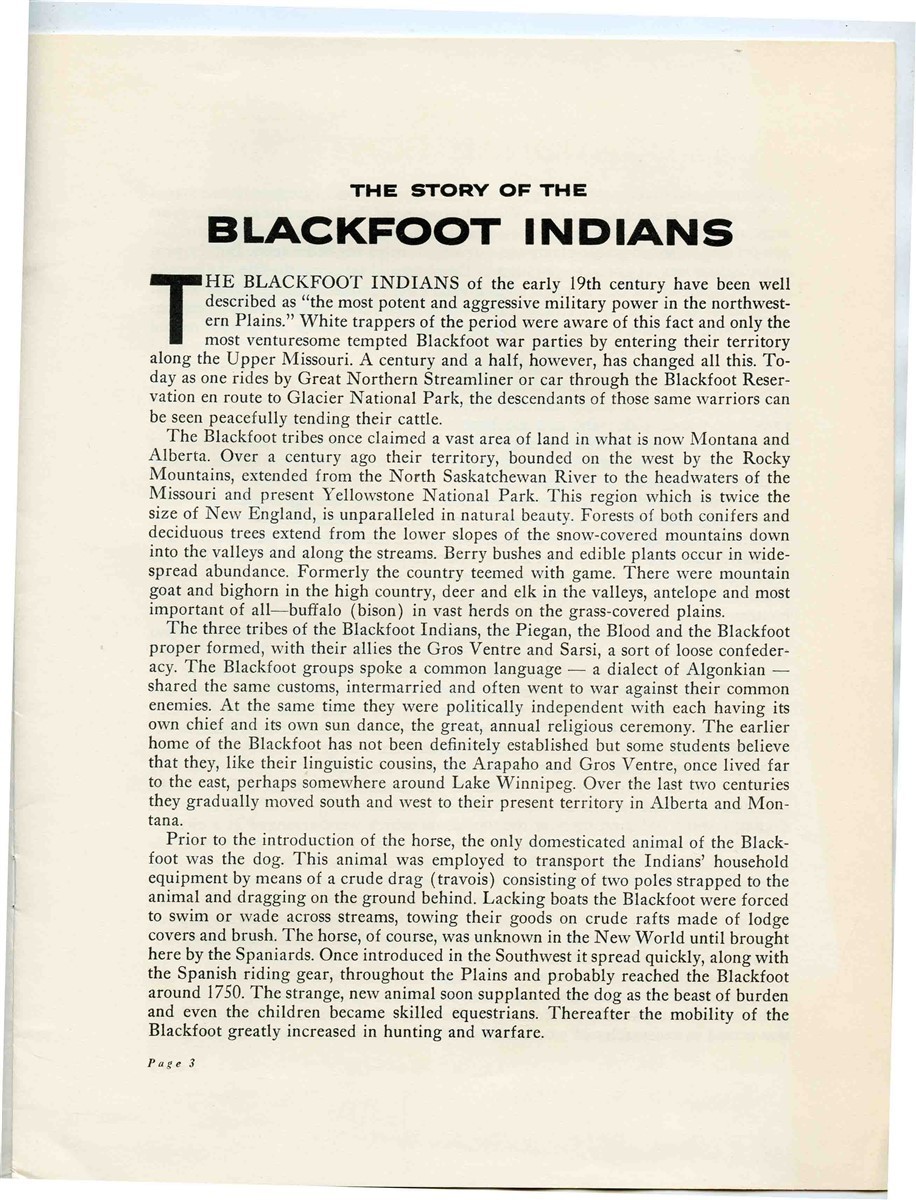 Story of the Blackfoot Indians Historical Sketch Great Northern Railroad 1958