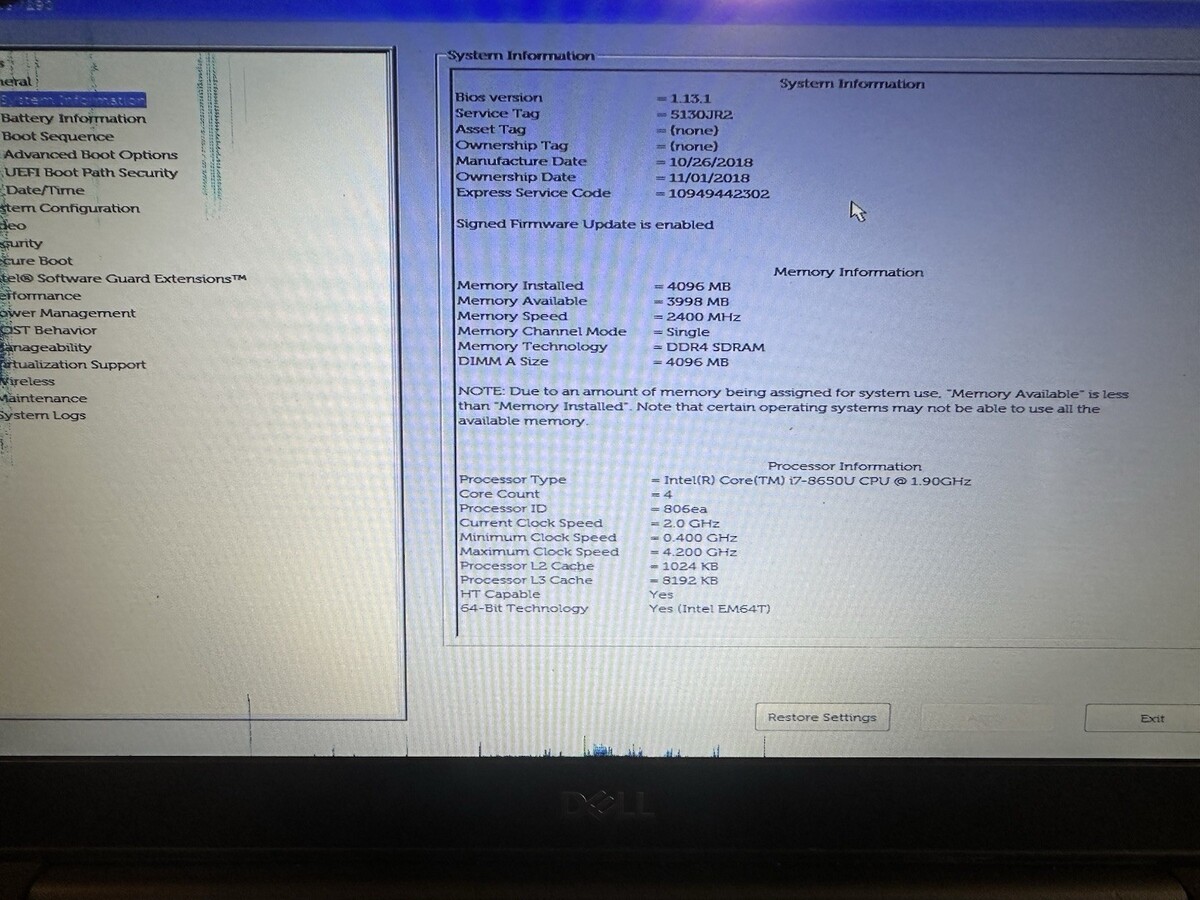 Dell Latitude 7290 Laptop Motherboard Intel Core i7-8650U @1.90GHz MXW44 0MXW44