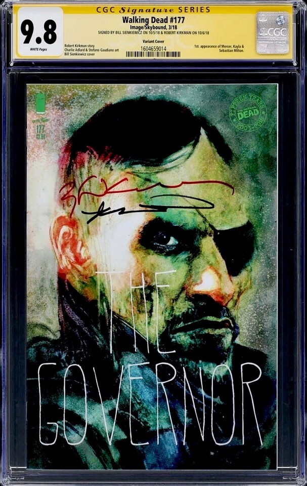 Walking Dead #177 CGC 9.8 SS Kirkman Sienkiewicz Signed Variant -Governor Cover