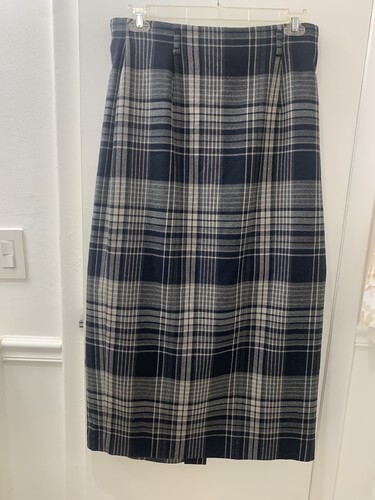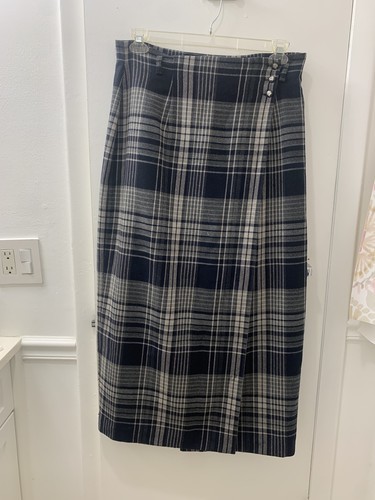 This Lauren Ralph Lauren women?s plaid skirt, size 14, is a classic and stylish piece made from 100% worsted wool in the USA. The midi-length skirt features a multicolor plaid pattern, perfect for adding a touch of sophistication to any outfit. The traditional skirt style, combined with the high-quality material and brand, makes it a timeless and versatile wardrobe staple for women who appreciate quality and American craftsmanship. Such a beauty. Lauren horse detail buttons. Worsted wool. Great piece for winter and a pair of boots and a jacket. Classic piece.