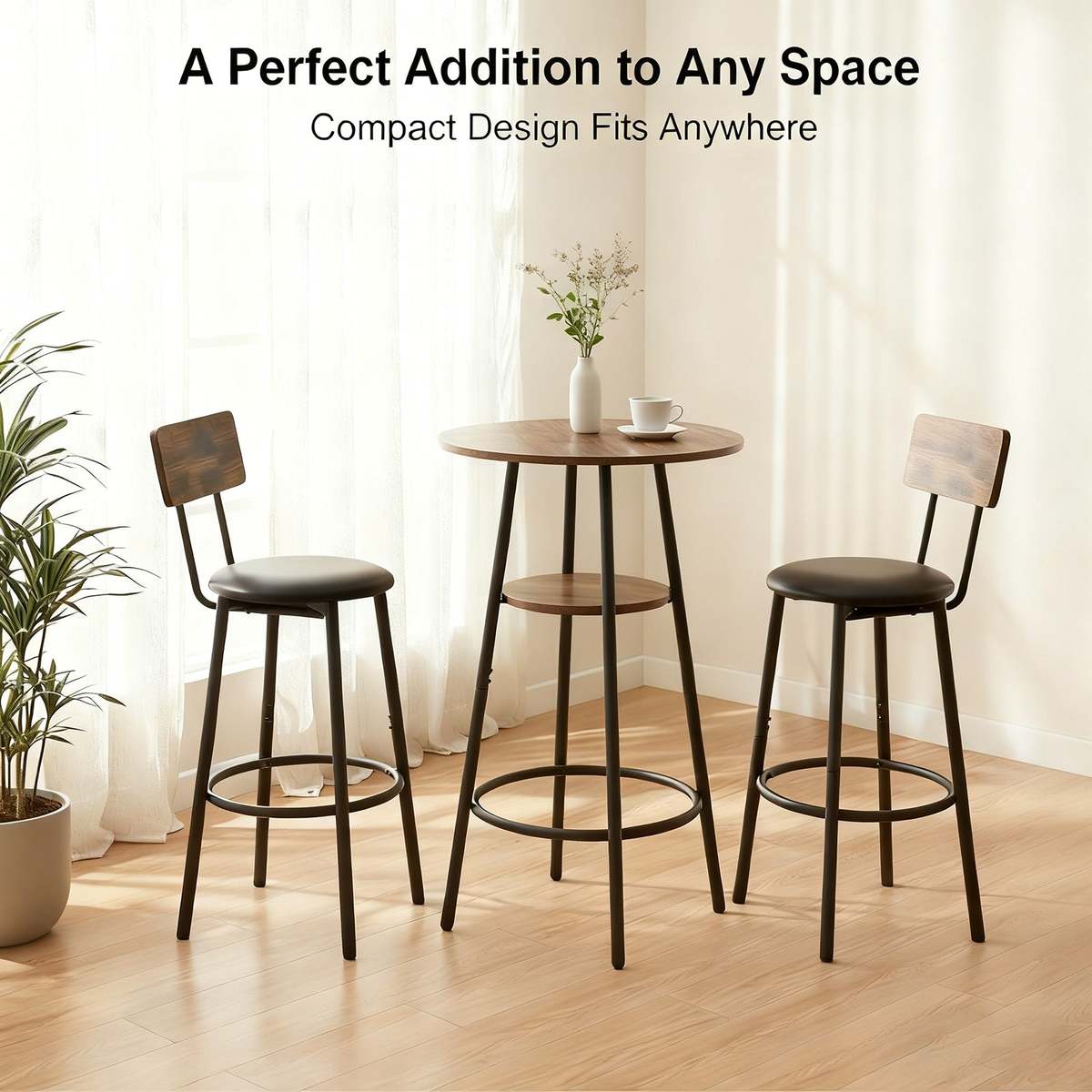 ?SMALL-APARTMENT-FRIENDLY AND SPACE-SAVING: This bar table and chairs setfeatures a compact design that minimizes space. Even small apartments and tight corners can easily create a dedicated mini bar or relaxation area, eliminating the need for overcrowding and making efficient use of every inch.