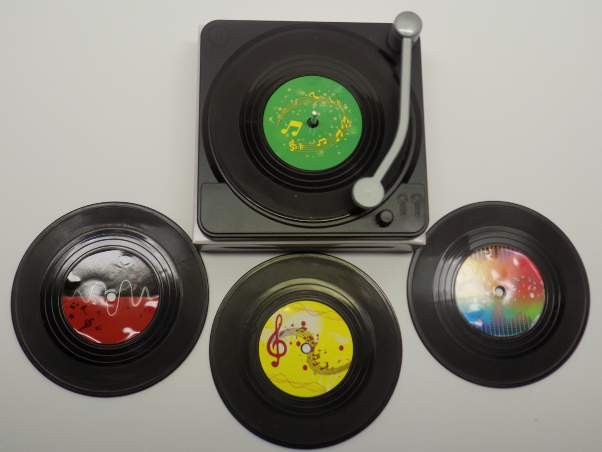 Retro Record Player Coaster Set ? Turntable Base + 4 Vinyl-Style Coasters