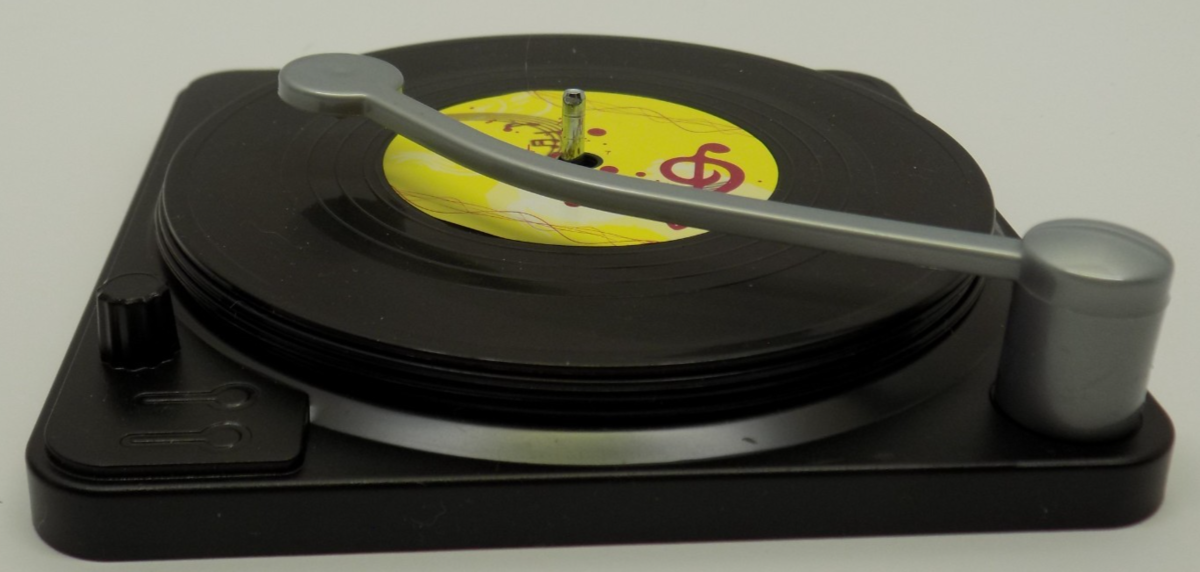 ? Design: Retro record player aesthetic with vibrant, music-themed artwork