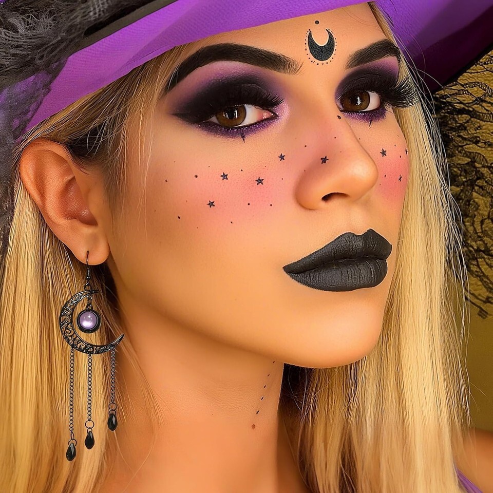 These earrings are versatile for everyday wear, Halloween, cosplay, music festivals, witch parties, or themed outfits. Lightweight and comfortable at 14 grams, they measure 4.5 inches long and 1.4 inches wide, ensuring all-day wearability.