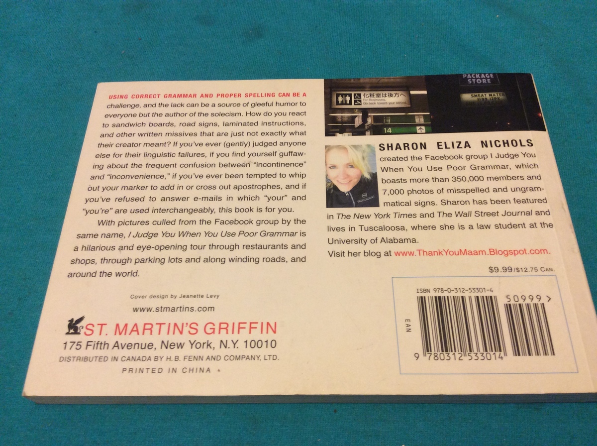 I JUDGE YOU WHEN YOU USE POOR GRAMMAR by SHARON NICHOLS - Softcover 1st EDITION