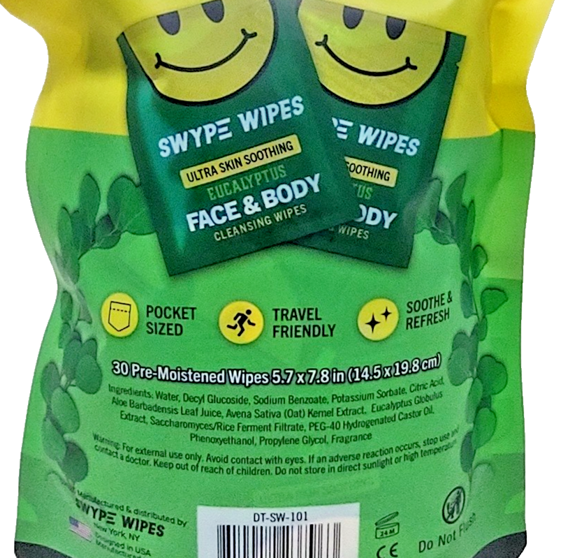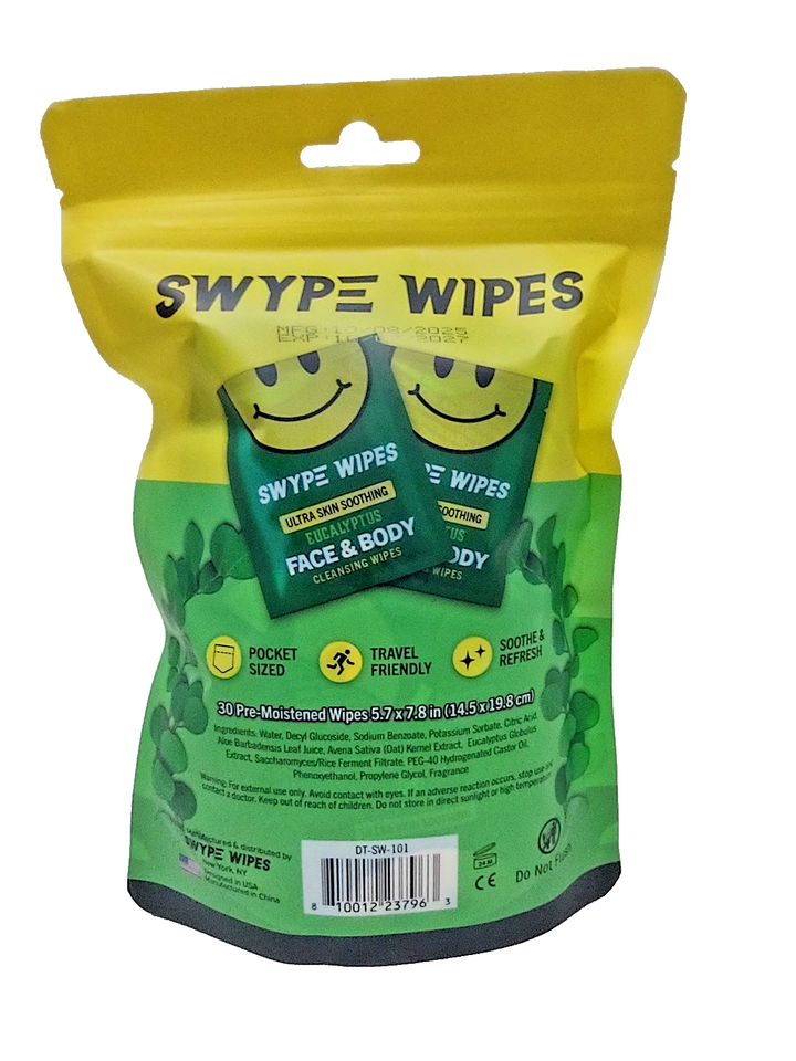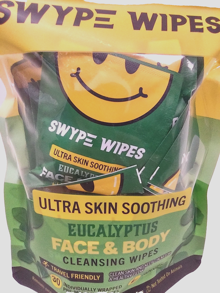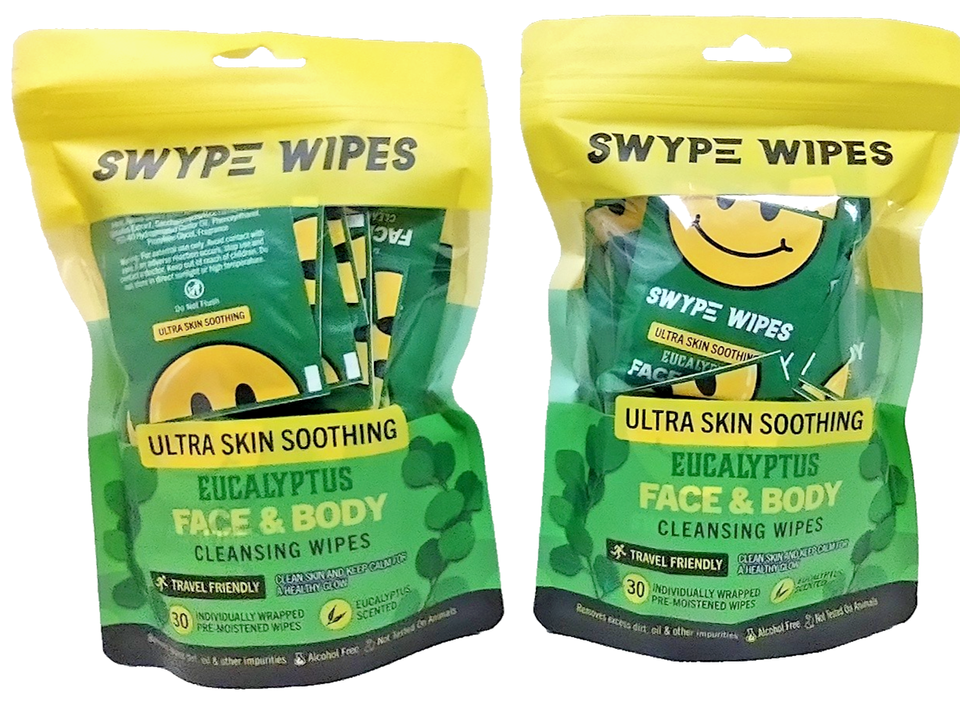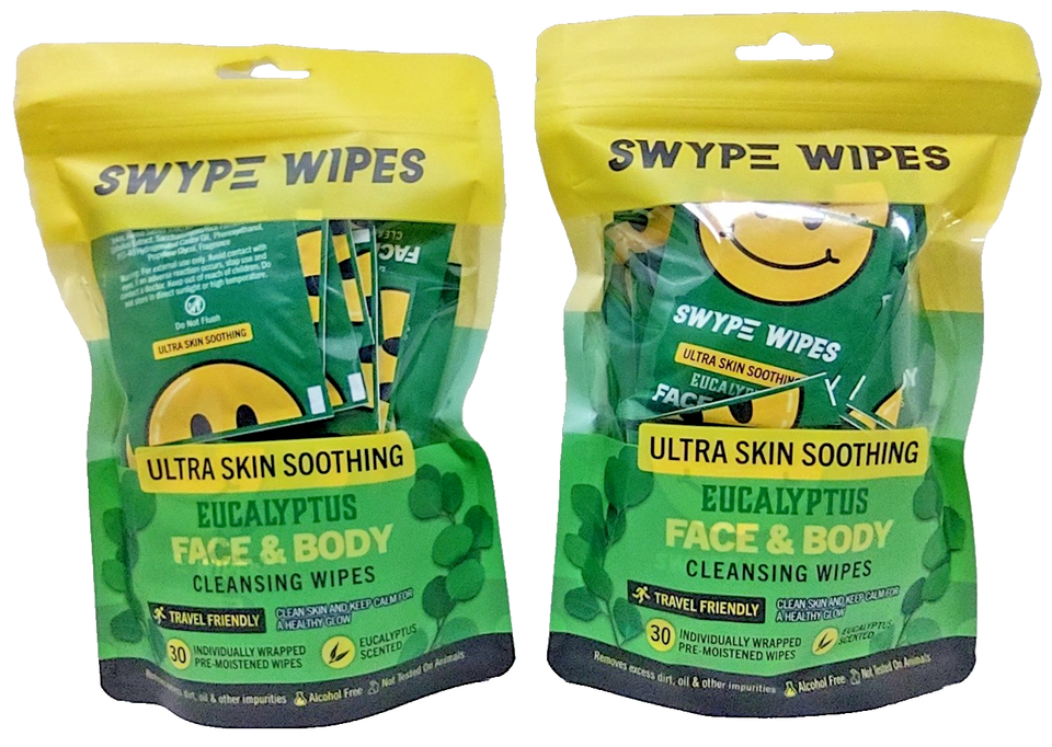 Lot 2 SWYPE WIPES Eucalyptus Face & Body Cleansing Wipe 30WIPES A PACK
