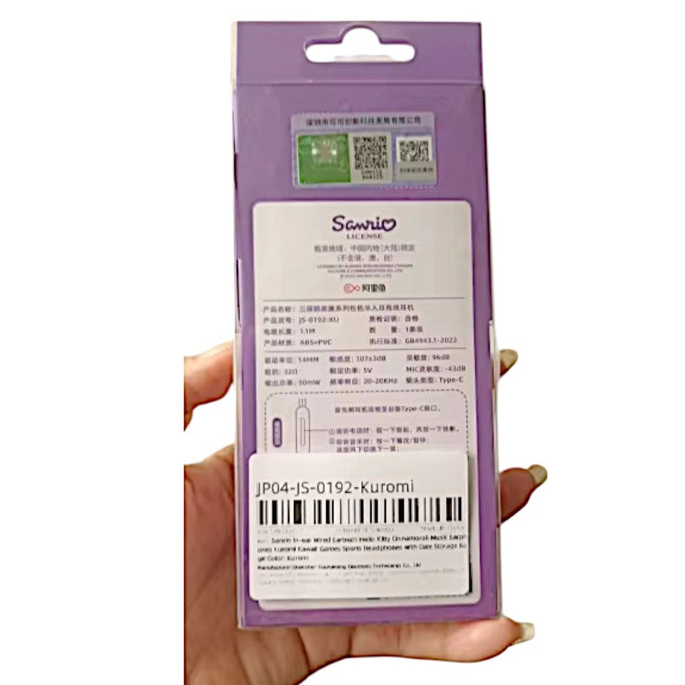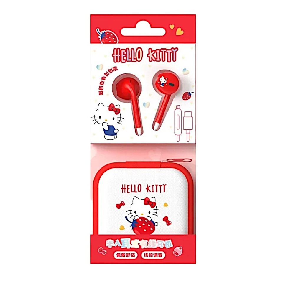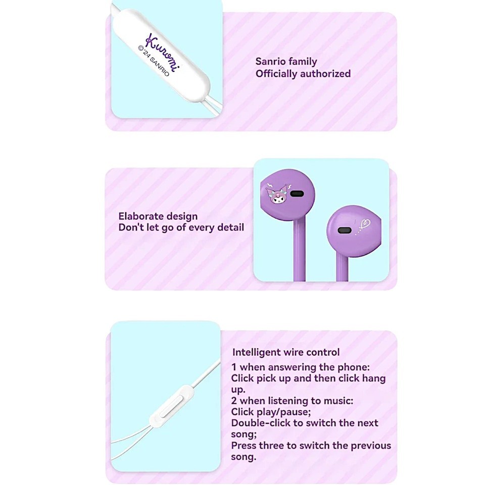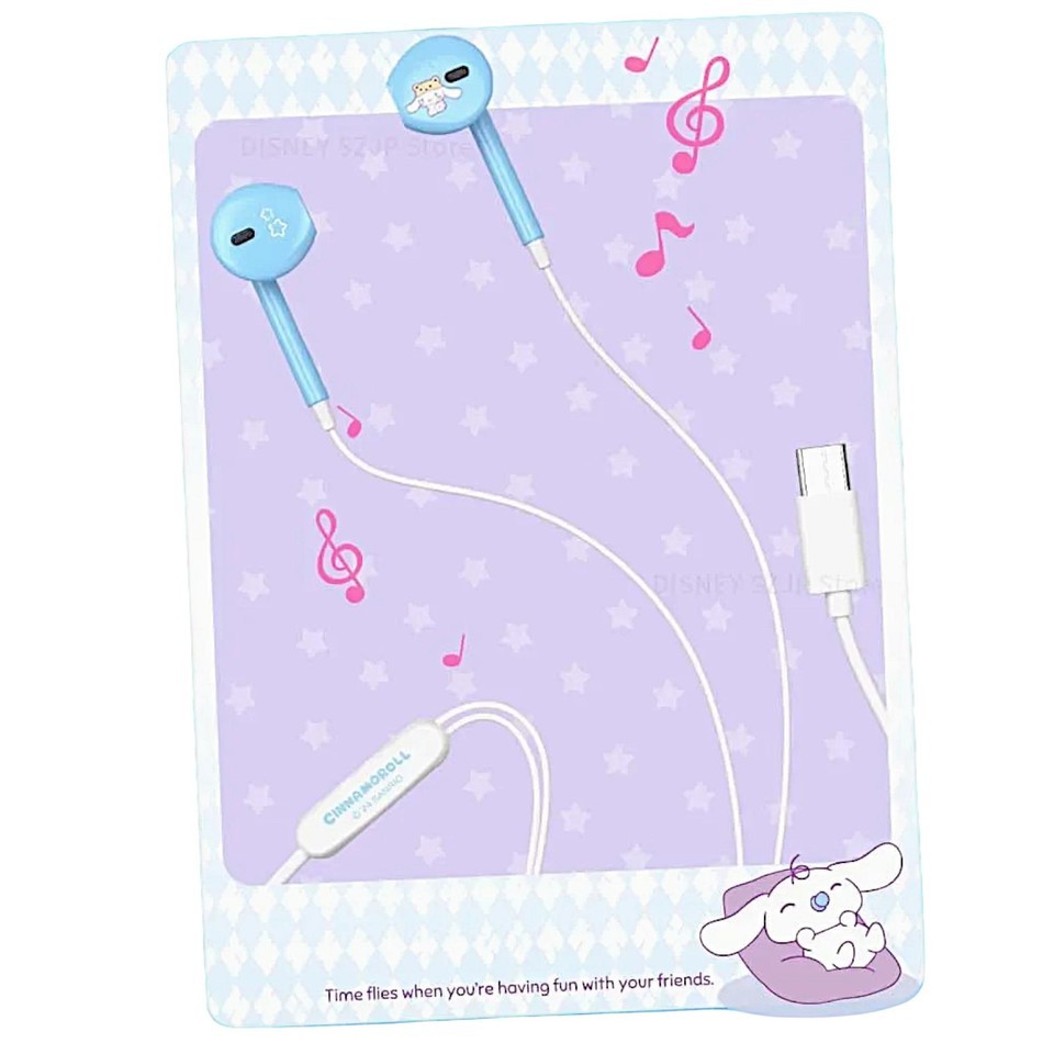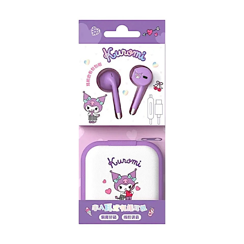 Kitty Kuromi Wired Headset Type-C Earphones In-Ear Smart Control Storage Bag Box
