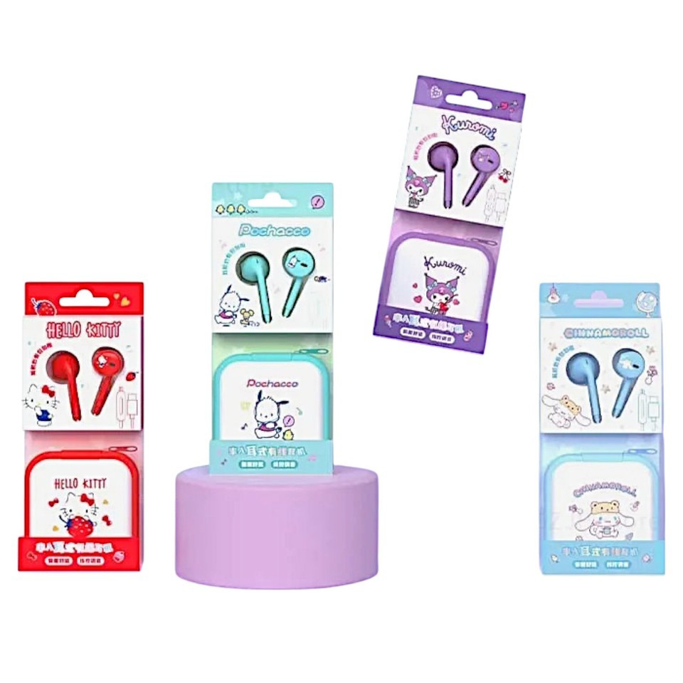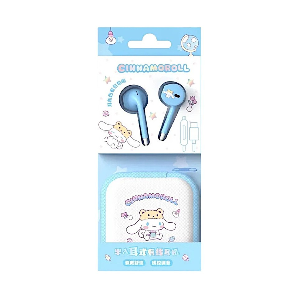 Kitty Pochacco Kuromi Wired Headset Cute Storage Bag Earphones In-Ear Gift Set
