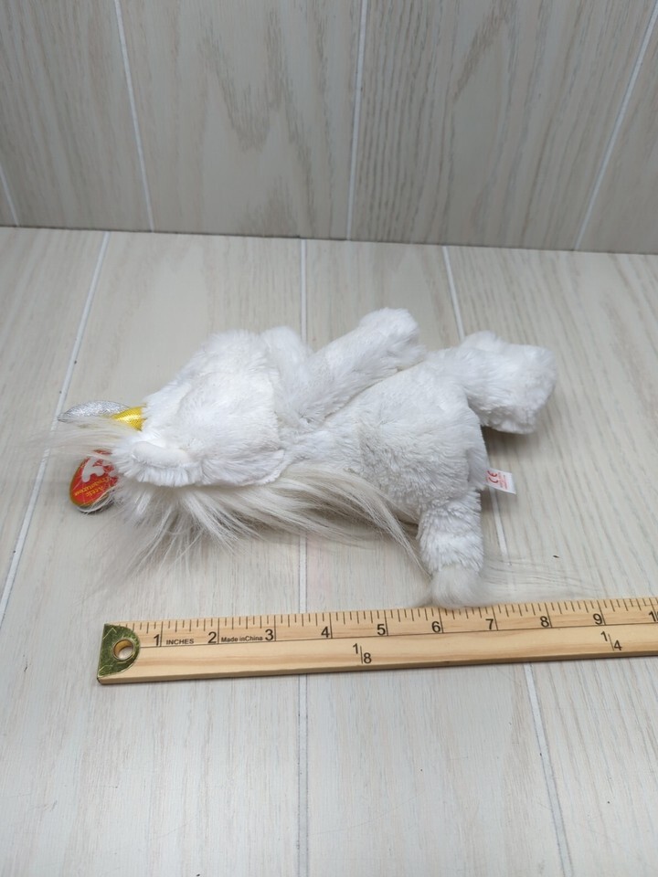 Ty Attic Treasures Agnus soft plush white unicorn silver gold horn blue eyes tag