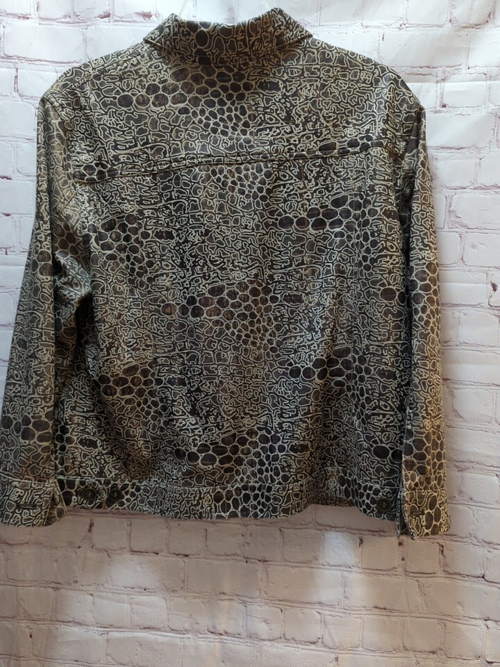 Ruby Rd Women's 18 Jacket beige tan brown gold animal abstract print 3/4 slv