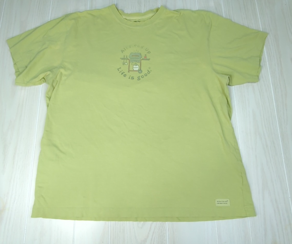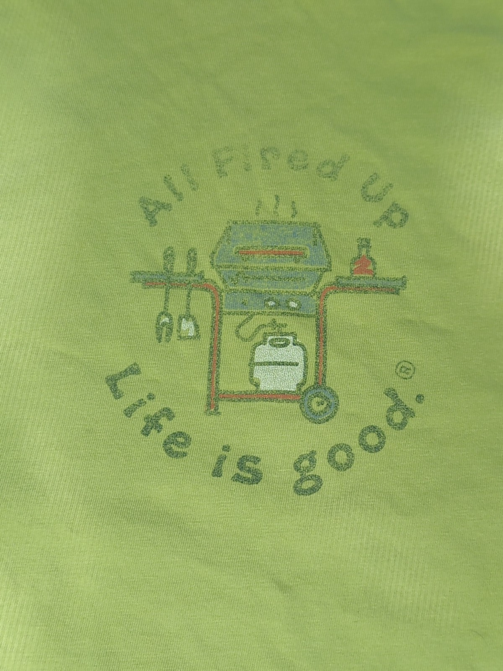 Life Is Good FLAWS men's XL All Fired Up grill t shirt green READ