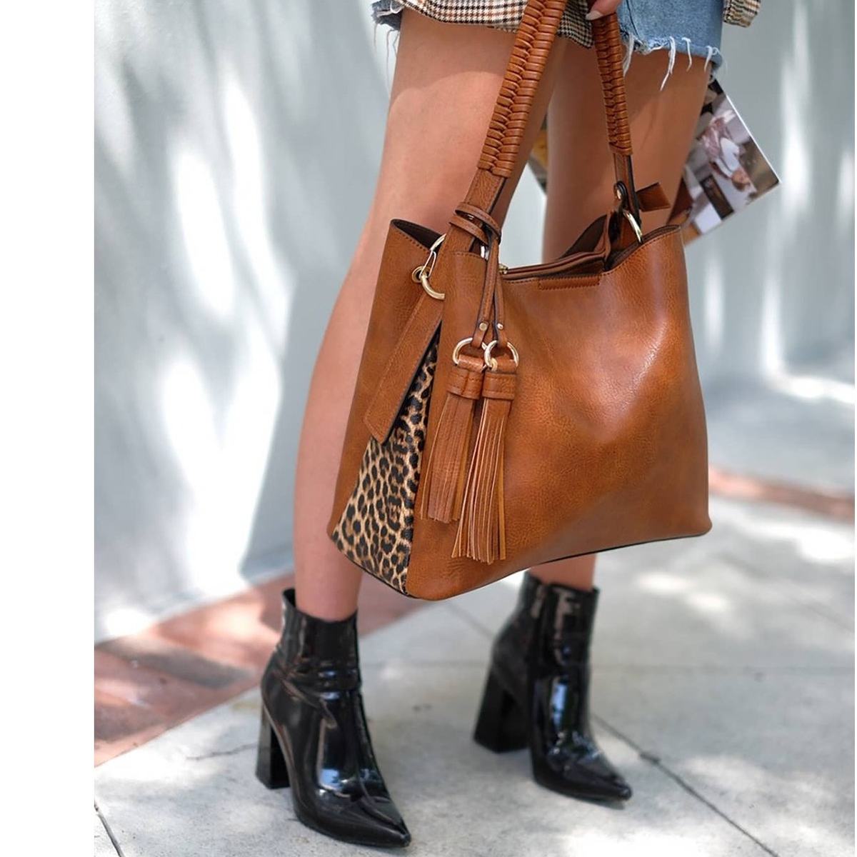 - Striking Animal Print Design: Bold leopard print panels contrasted with sleek solid vegan leather create a sophisticated yet edgy aesthetic