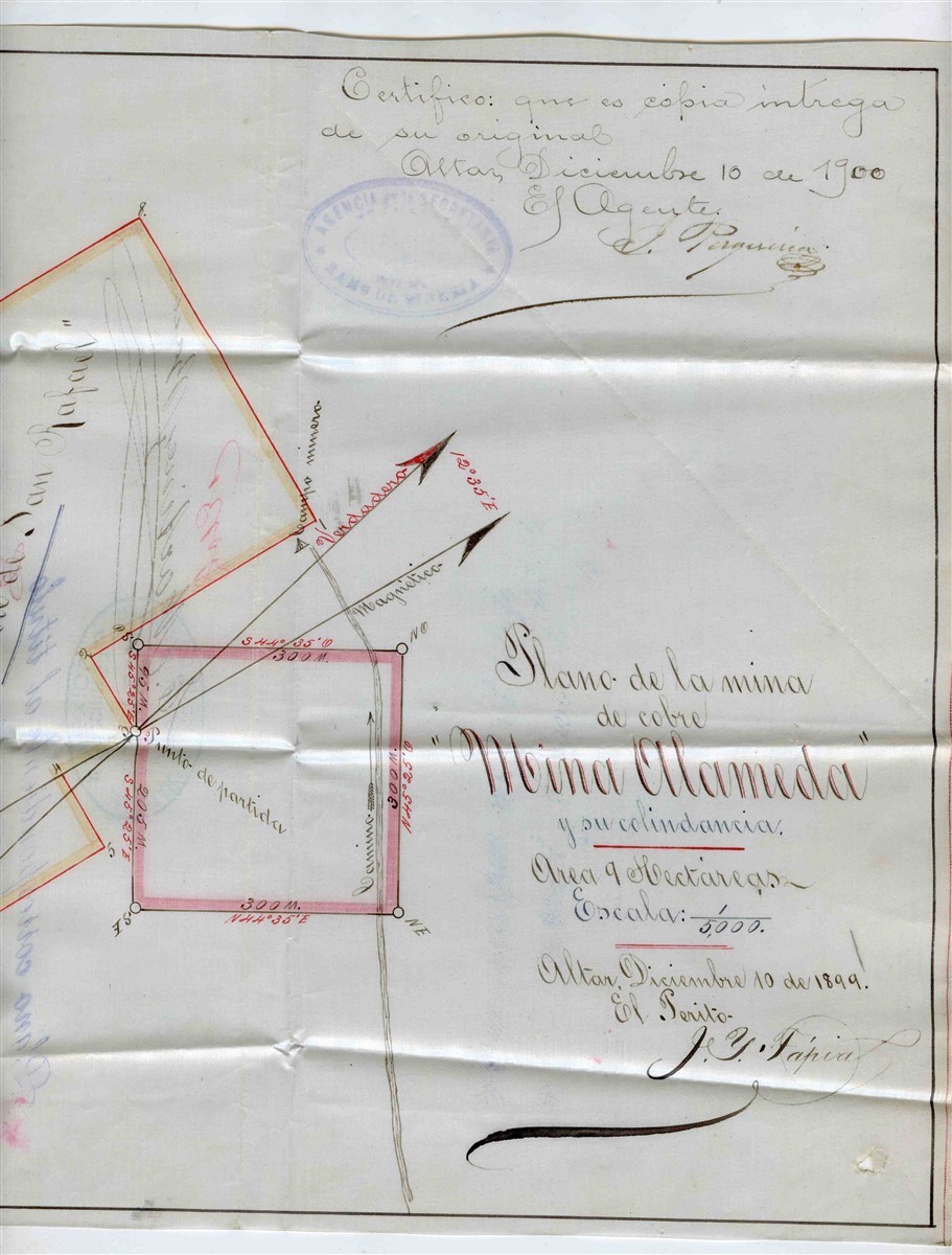 Mexico 1899 Mining Claim Map Mina Alameda Gold Mine