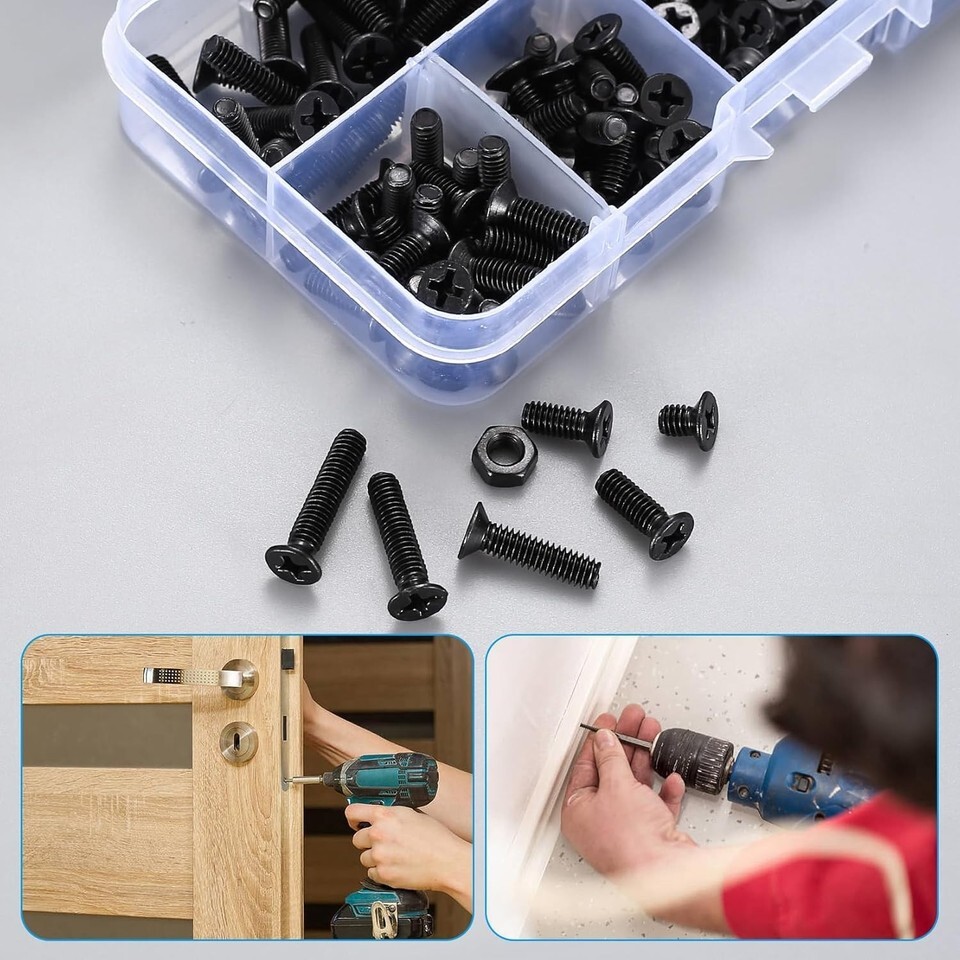 M4 Black Flat Head Machine Screws & Nuts Assortment 220pcs