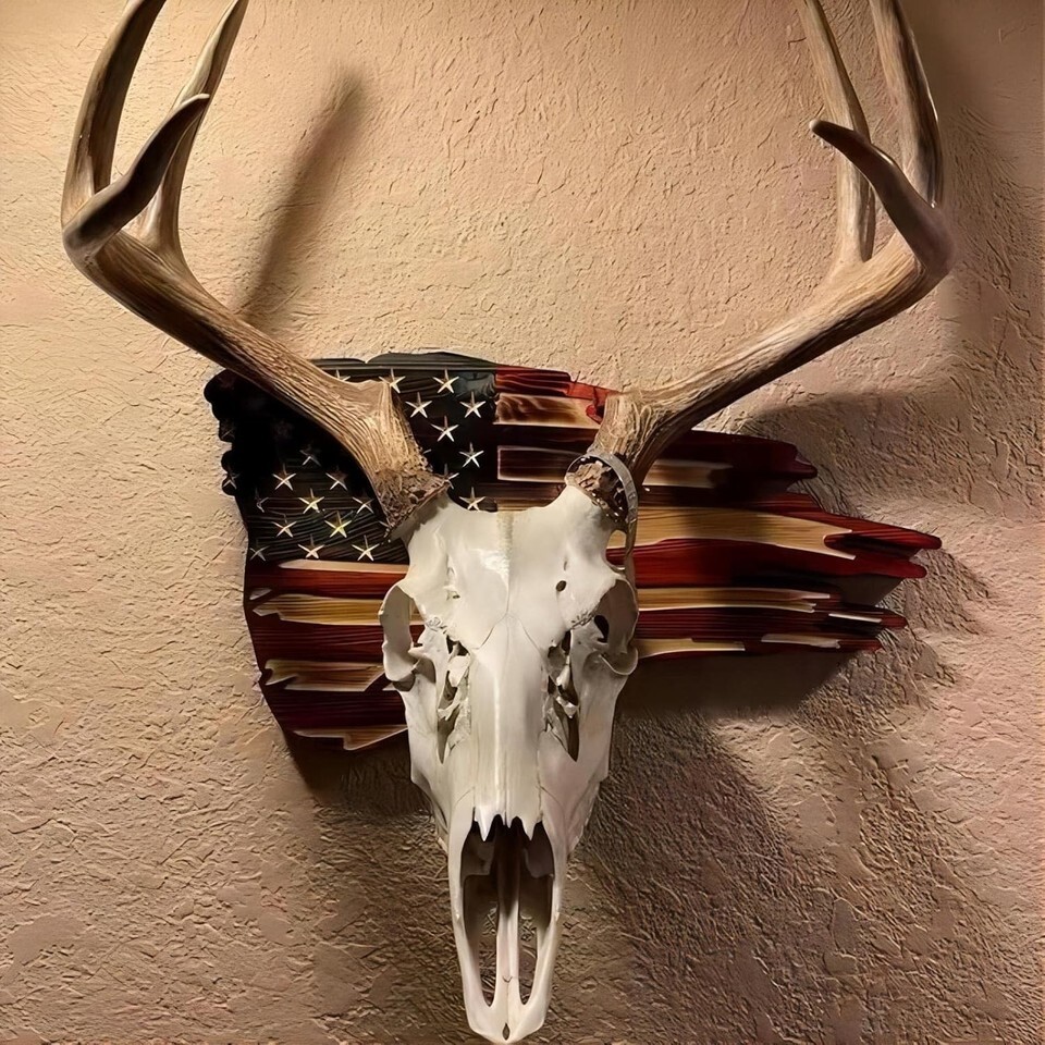 European Mount Skull Hanger, USA Flag Decor Hooker Pedestal, Deer Antler Mountin