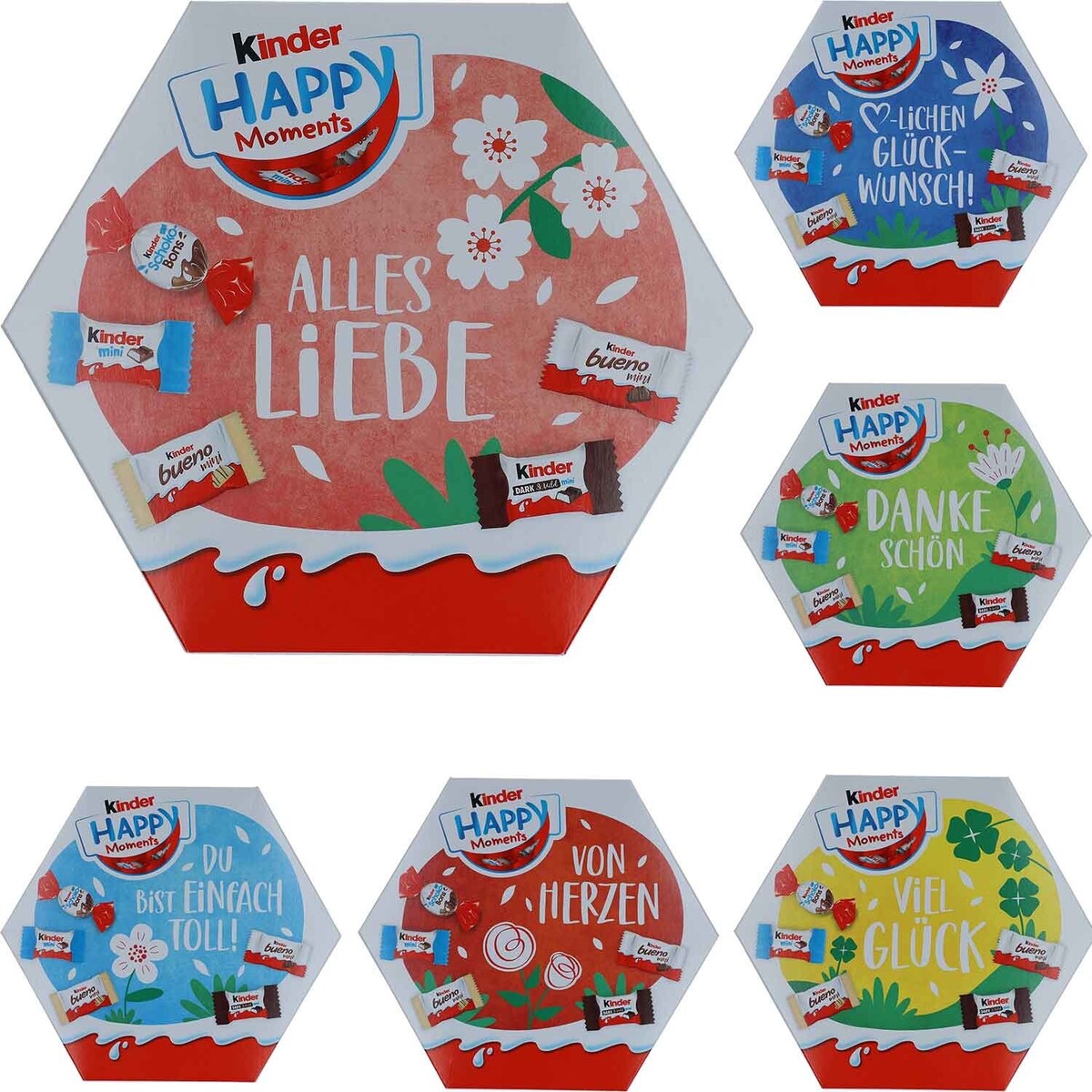For the happy moments in life. The Kinder Happy Moments mini Mix has something for every sweet tooth. The delicious mixture consists of Kinder's most popular minis and ensures varied and colorful snacking fun. With the practical packaging, the sweet treats can be easily served and nibbled.