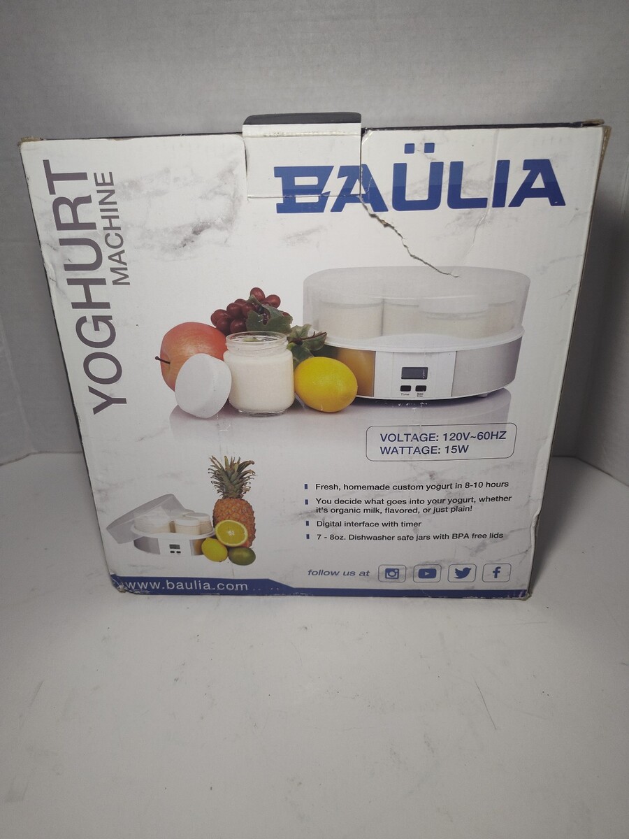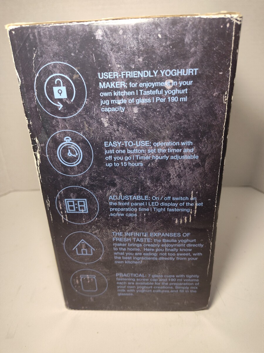 This Baulia YM805 Automatic Yogurt Maker is brand new, open box. Unit is unused and complete with all 7 original 6 oz glass jars and lids. Box has been opened for inspection but the contents remain unused.
