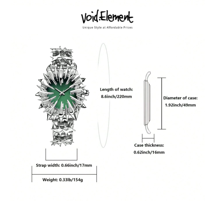 Y2k Spiked Watch Alabaster Street Demon Dial Unique Design Quartz Watch Green