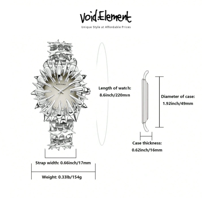 Y2k Spiked Watch Alabaster Street Demon Dial Unique Design Quartz Watch