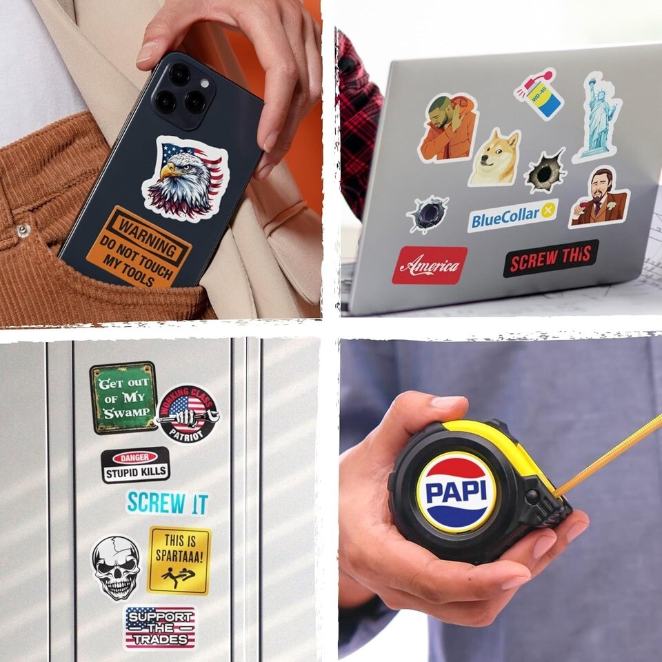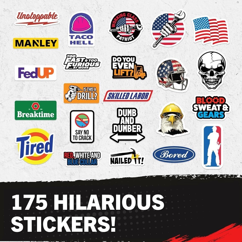 Stand Out at Your Jobsite Personalize Your Gear with a Variety of Funny Hard Hat Stickers for Men Women. Show your unique personality humor with 175pcs sticker packs for adults designs that range from professional to funny with no duplicates. Multifunctional versatile blue collar stickers that look great on any surface. Stick anywhere ? hard hats, welding helmets, tool box accessories stickers, cars, trucks, lunch boxes, laptops, water bottles, gear bags, machines, clipboards more!