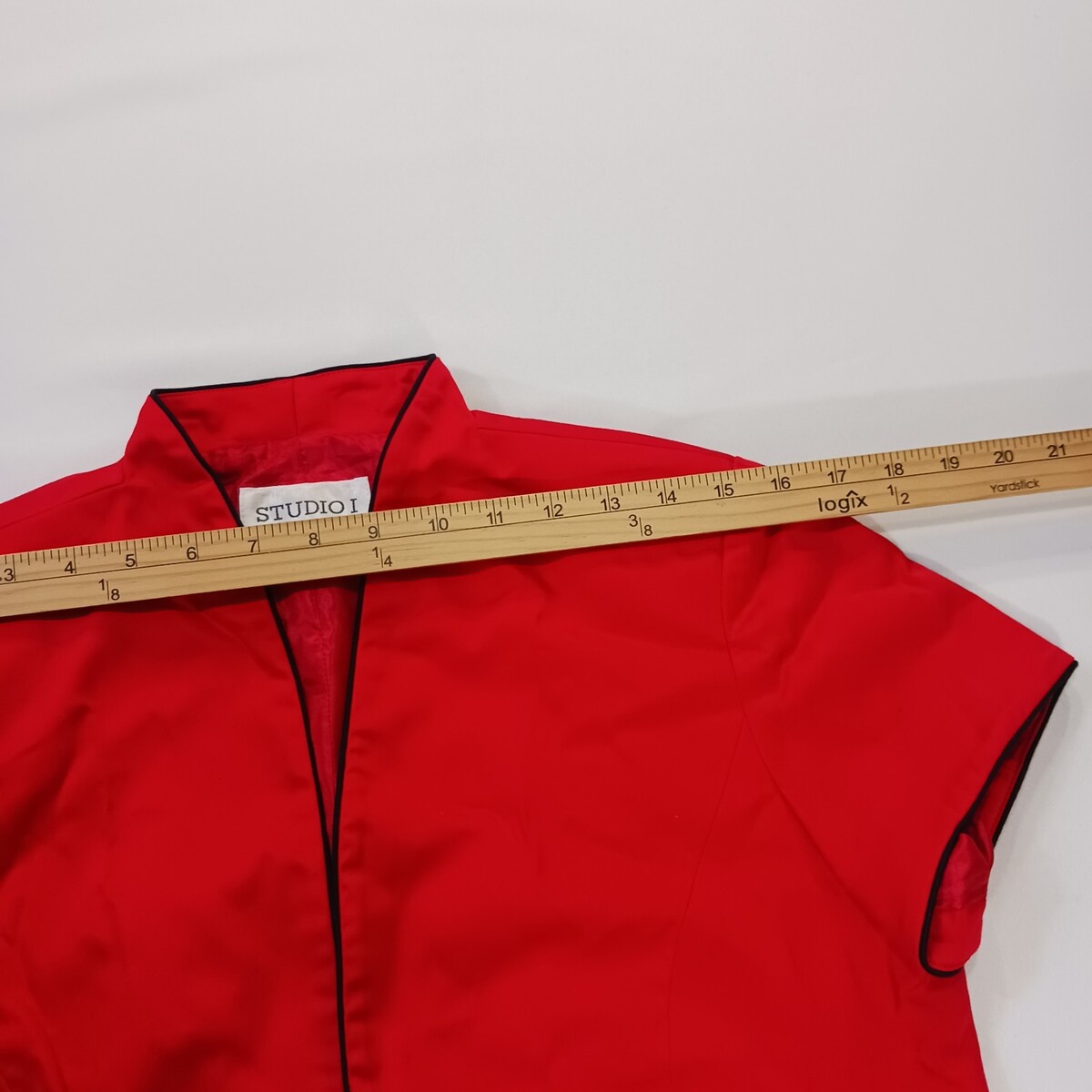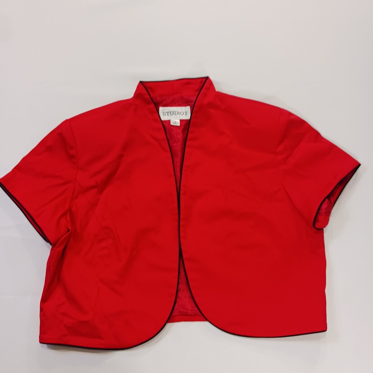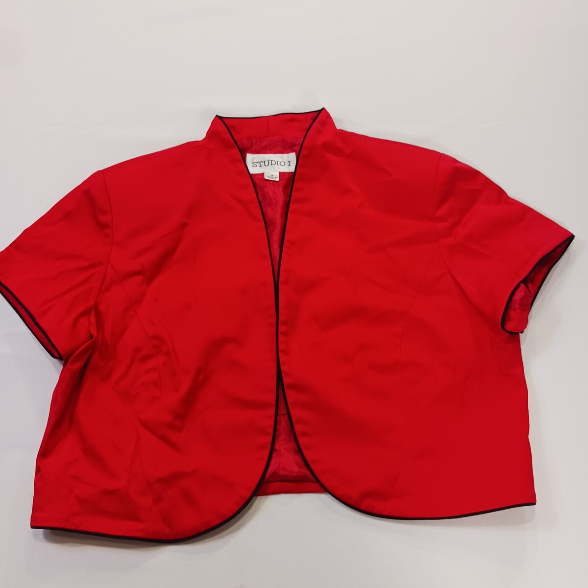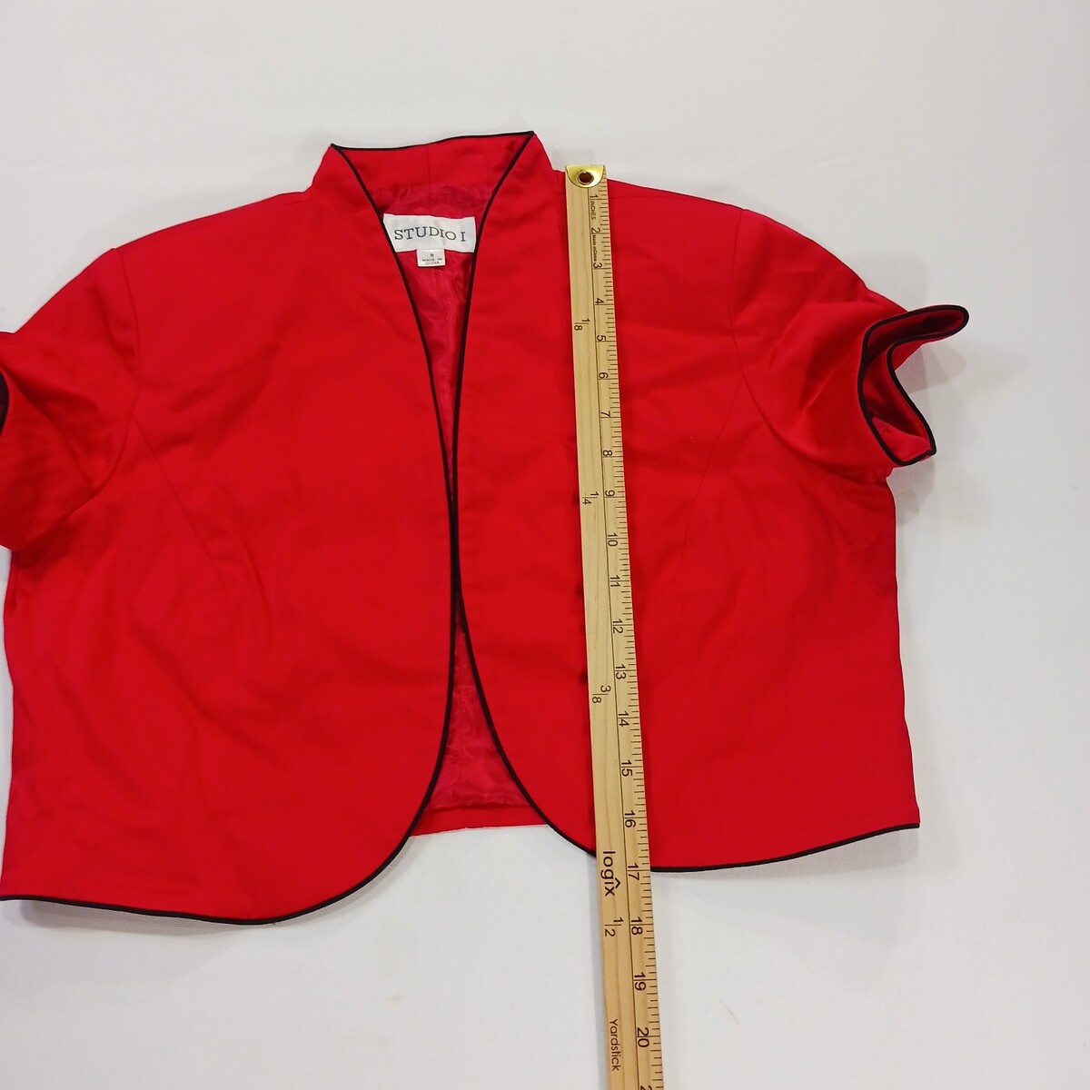 Vintage STUDIO I Women's Red Cotton Blend Open Front Blazer Jacket Size 8