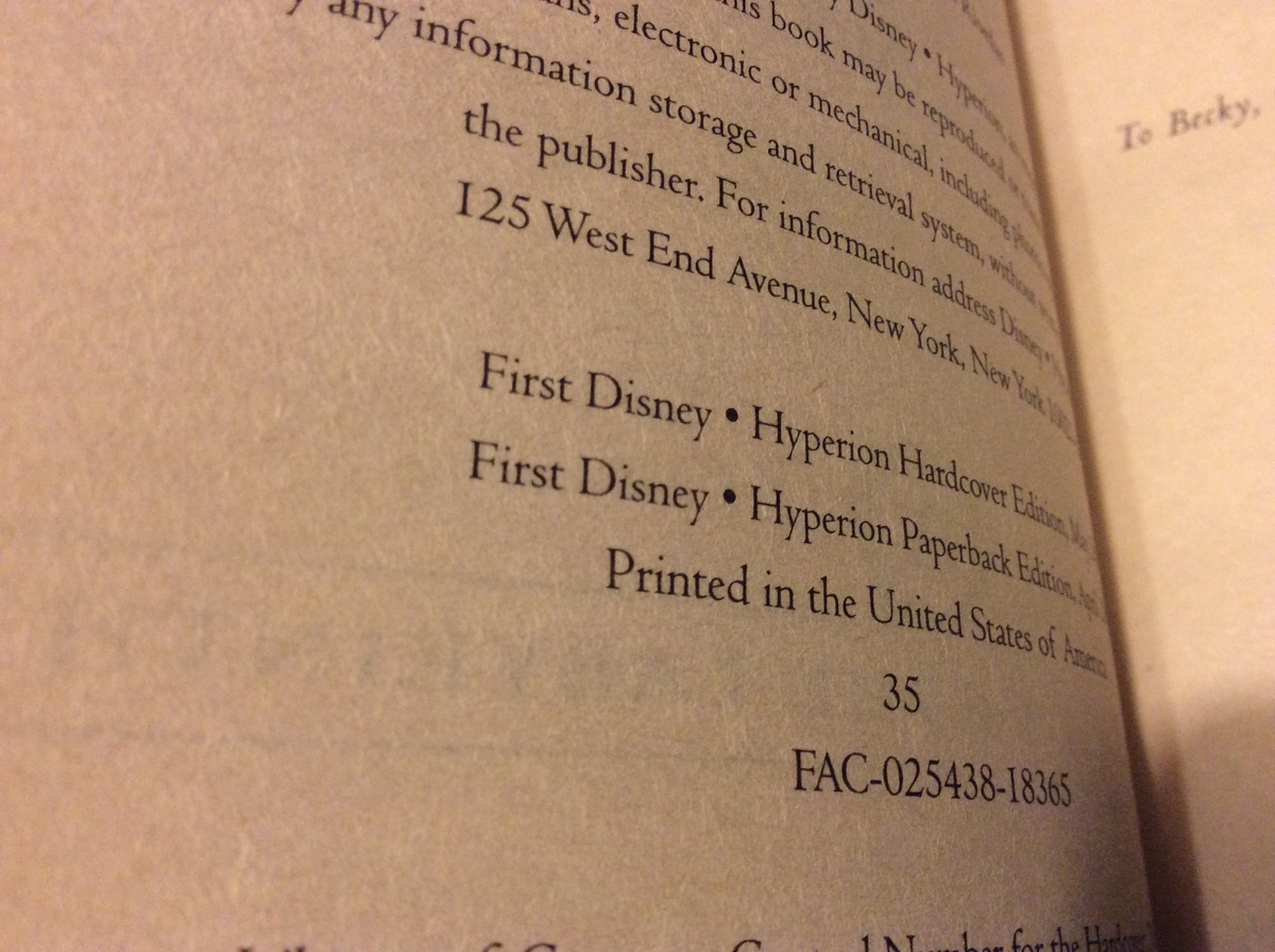 FIRST DISNEY HYPERION PAPERBACK EDITION, APRIL 2009 STATED