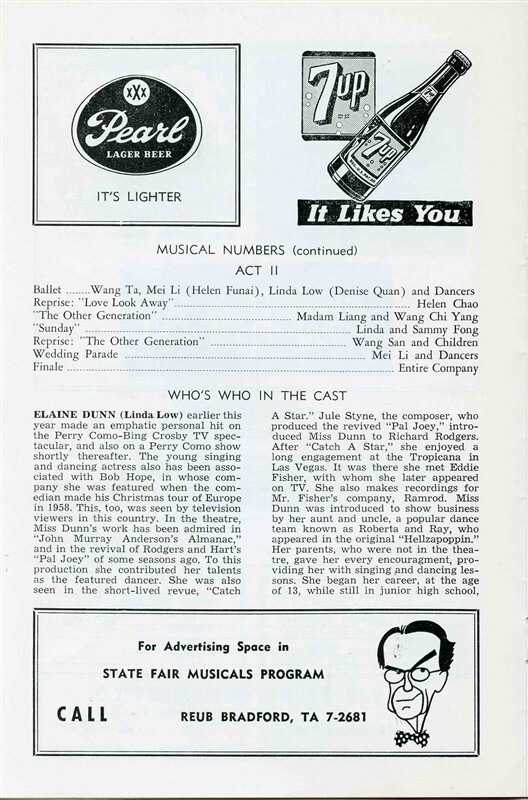 Flower Drum Song Program 1961 Elaine Dunn and 40 similar items