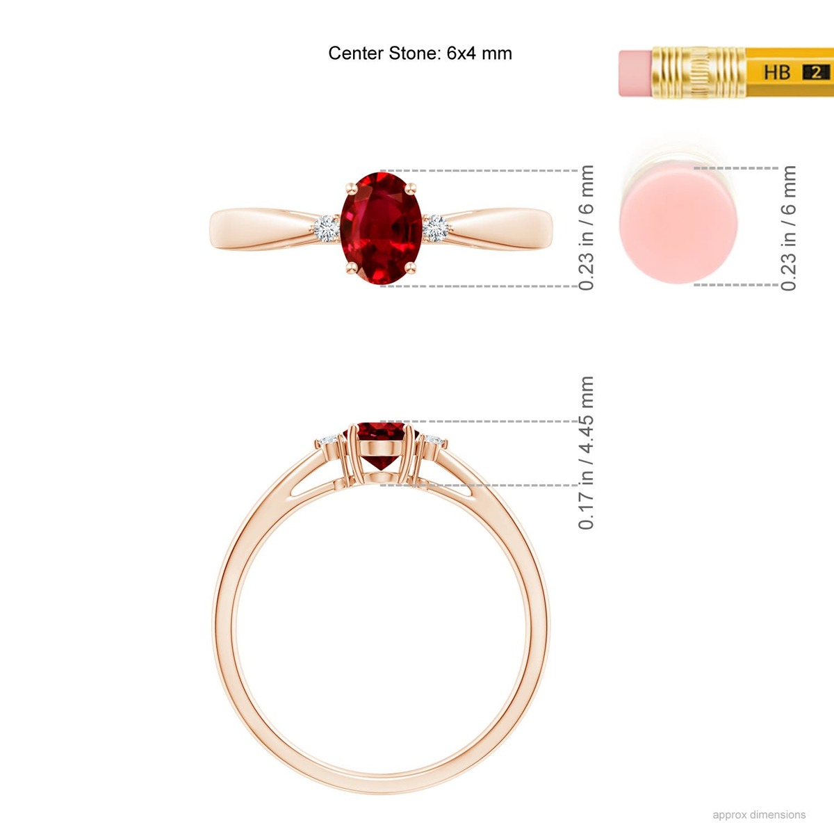 Prong set at the center in between two round sparkling diamonds, the oval ruby looks stunning. The reverse tapered shank lends a touch of sophisticated charm to this dazzling 14K Solid Gold oval ruby ring.This Ruby ring is crafted in Solid Gold ? a stunning choice for lovers of fine Ruby jewelry. Every item comes with an Angara Certificate of Authenticity, which will be sent to you via messages or with the package.