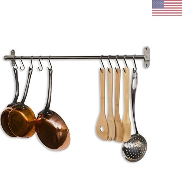 Lyon " Wall Mount Kitchen Utensil Holder With 10 S Hooks For Hanging Pots and Pans Set