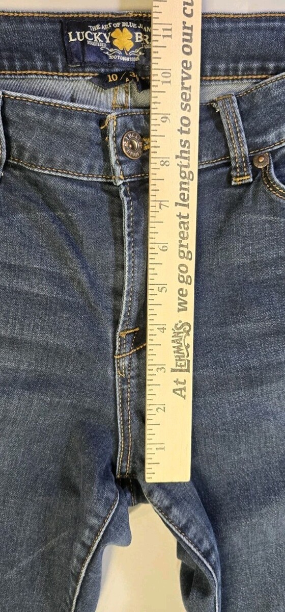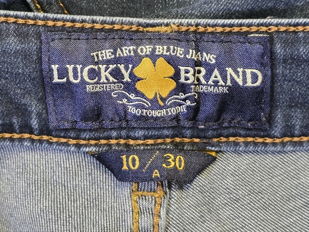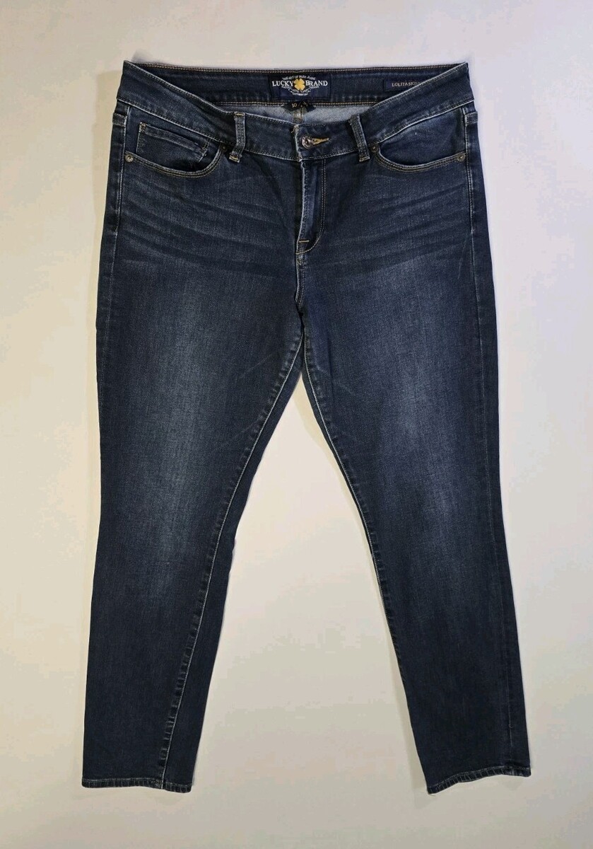 Please see all photos including third photo showing scuffed area on back right leg. The Lucky Brand Lolita Skinny Jeans in women's size 10/30 A (32x28.5) are a stylish and versatile denim staple for any wardrobe. Made from comfortable cotton denim with a stretch feature, these mid-rise jeans have a classic 5-pocket design and zip and button closure. The dark blue color and solid pattern make them a versatile piece for all seasons, while the skinny style and regular fit offer a flattering silhouette. Featuring the Lucky Brand logo as accents, these jeans are perfect for a casual yet put-together look, inspired by 90s and preppy themes. Machine washable for easy care, these jeans are a must-have for any fashion-forward woman.