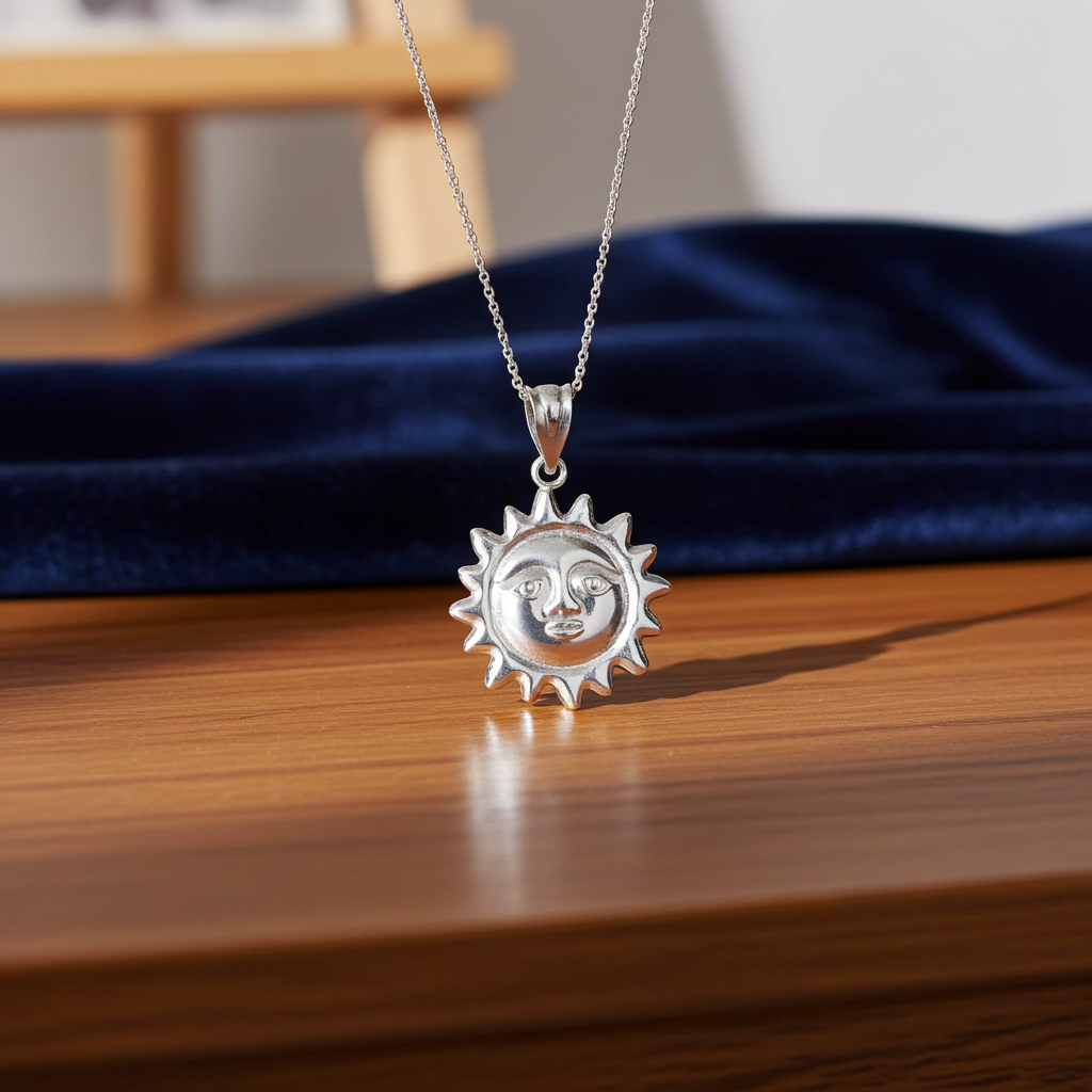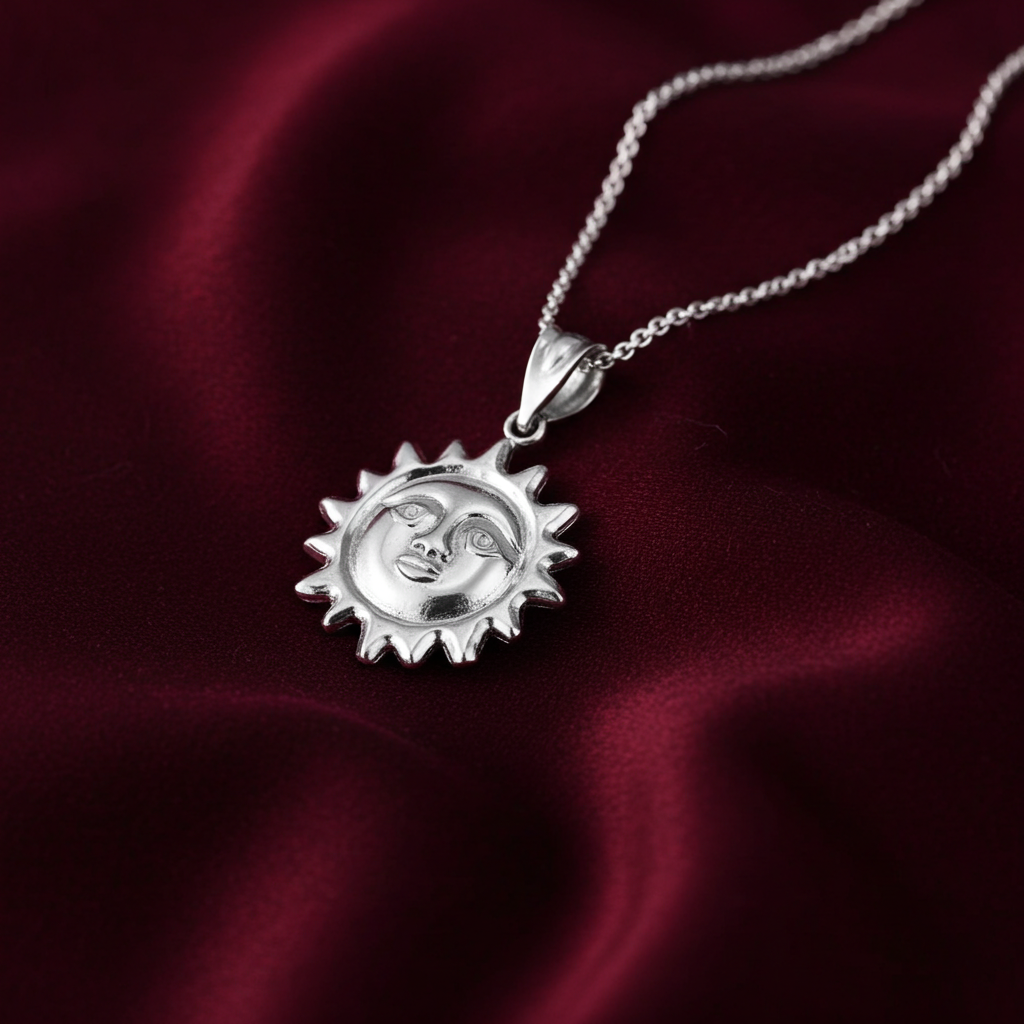 Sterling Silver Sun Face Celestial Charm Pendant Necklace