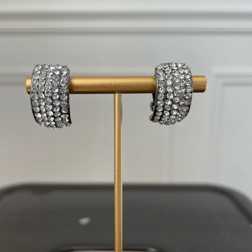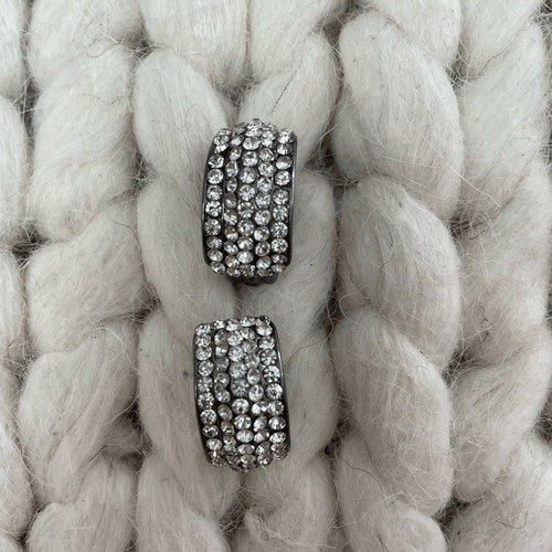 C-Shape Rhinestone Crystal Clip On Earrings Gunmetal