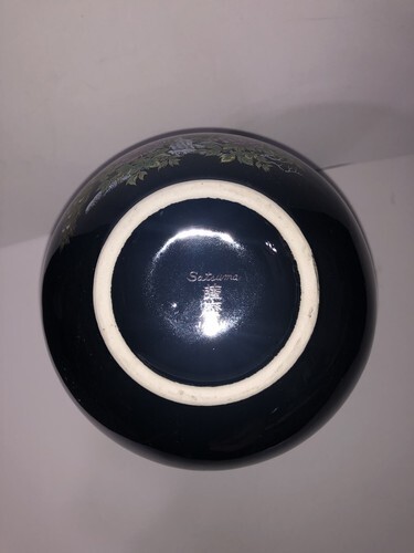 Vintage Japanese Vase Black Balloon Porcelain Peacock Floral Design Gold Accents