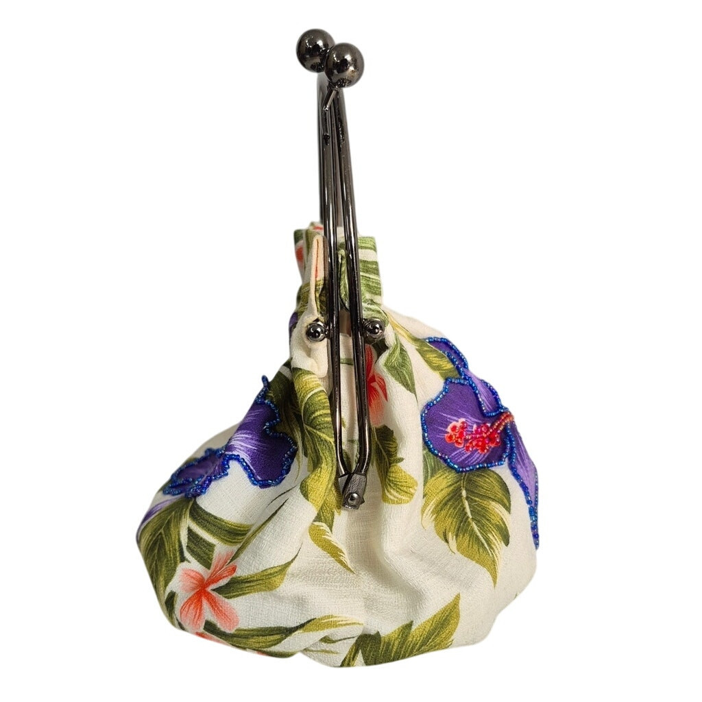 Vintage KYs Hawaii Floral Purple Hibiscus Purse Beaded Bag 90s Y2k your Retro in excellent condition