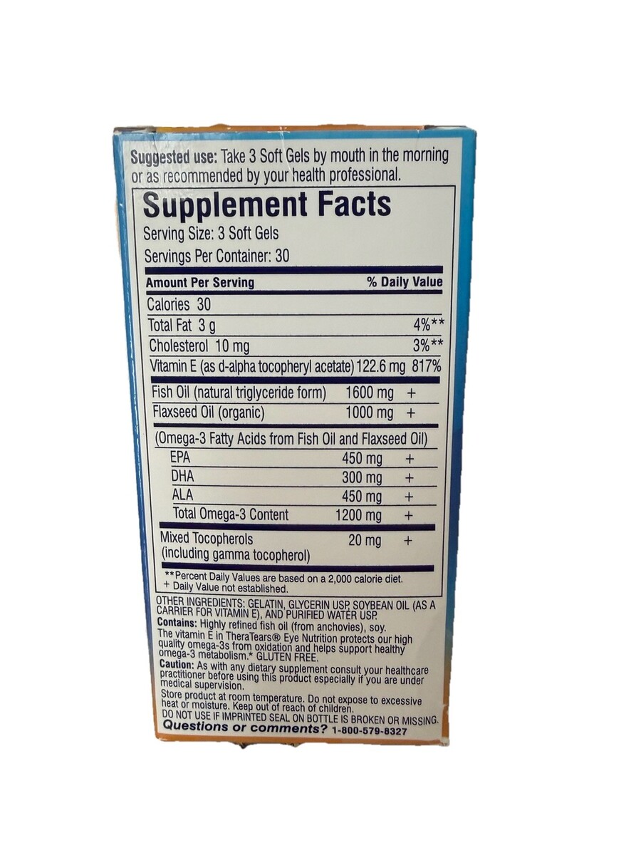 3X Thera Tears Eye Nutrition Dry Eye Relief Capsules 90 Capsule 3/28.