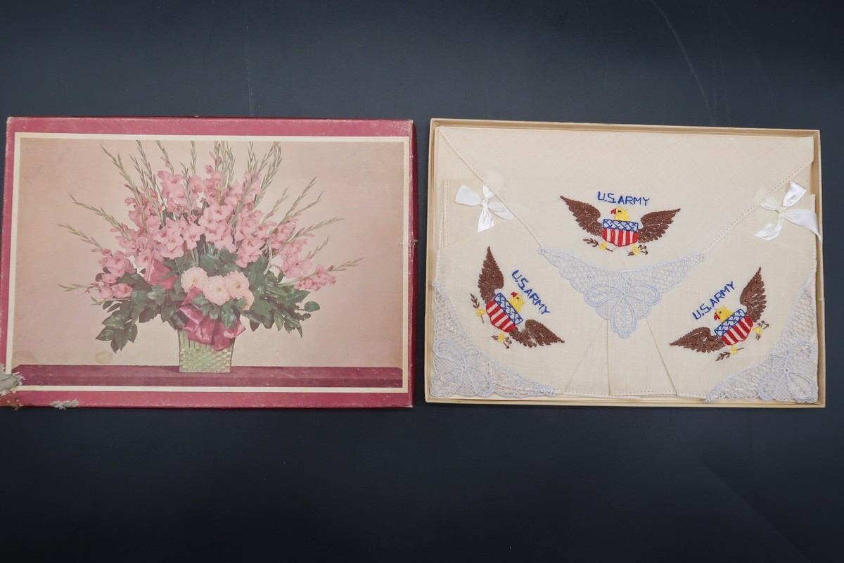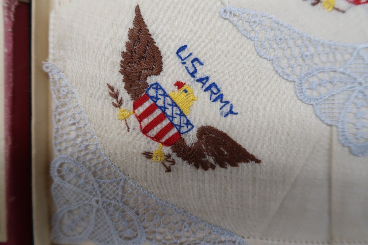 Vtg U.S. Army Souvenir Handkerchief GI Sweeheart Gift WW2 Era Eagle Fig Arrows