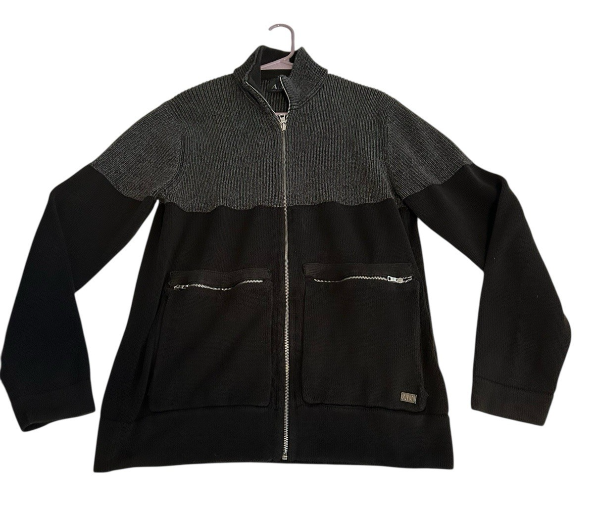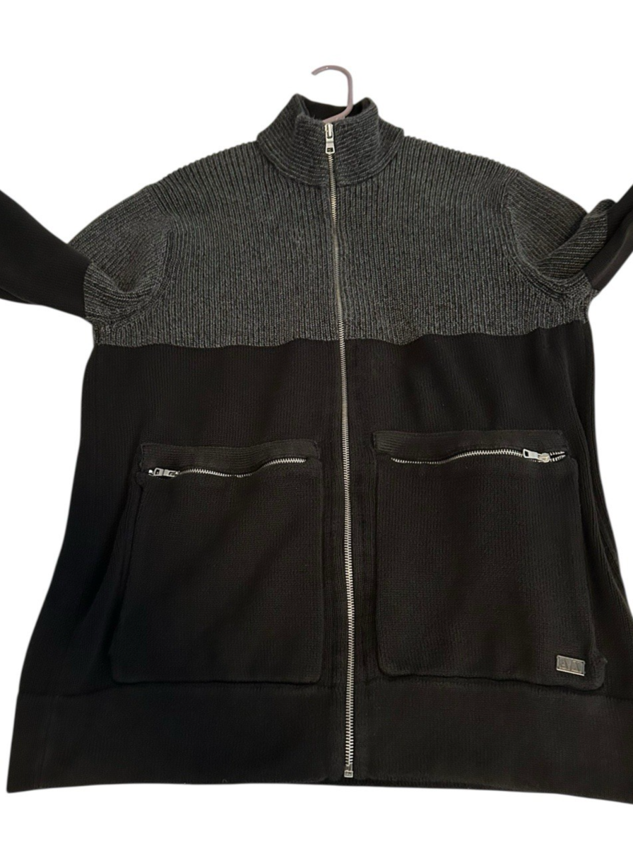 Armani Exchange Sweater Men’s XL Full Zip w/Mock Neck Gray w/Black