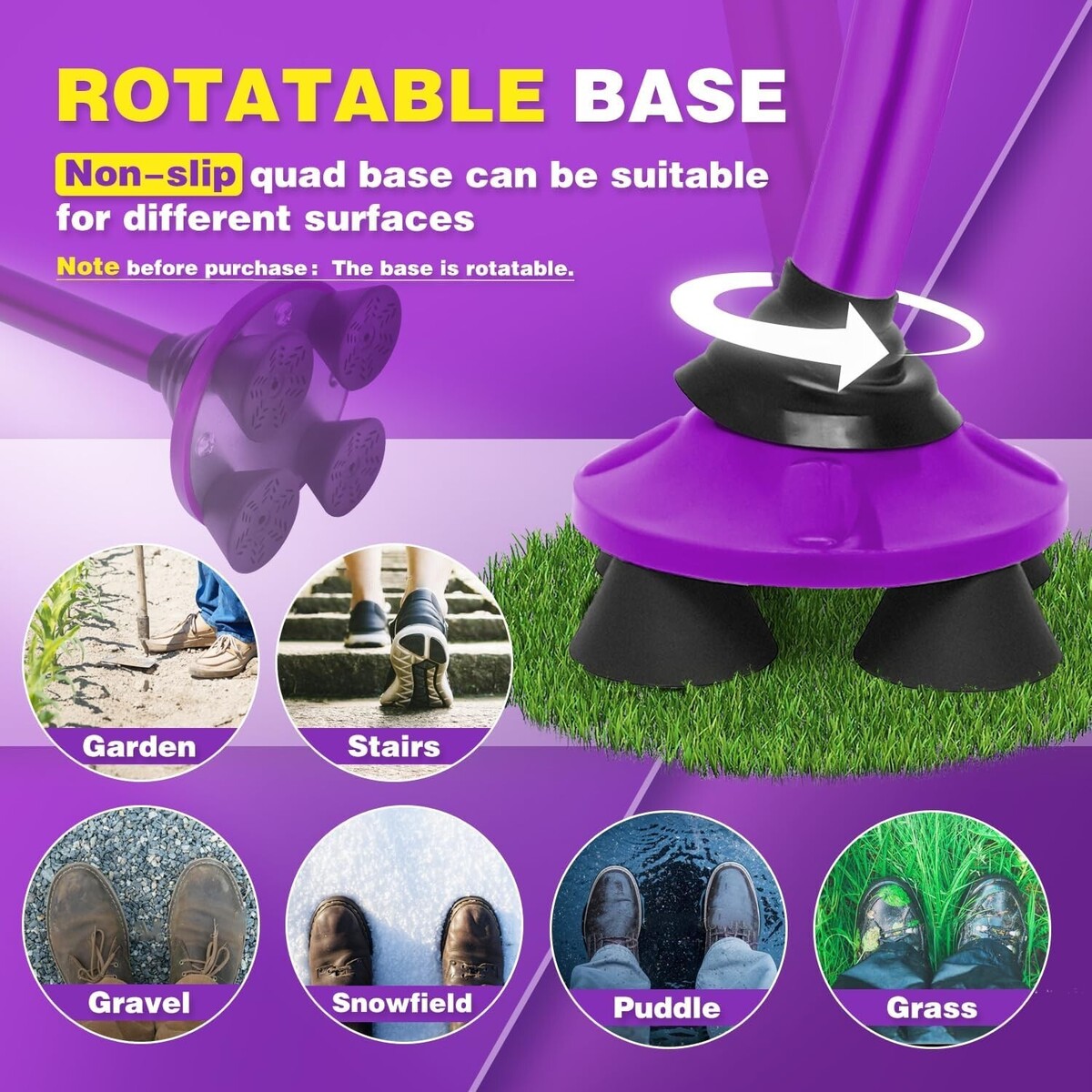 Adjustable Folding Walking Cane with Pivoting Quad Base - Lightweight & Portable