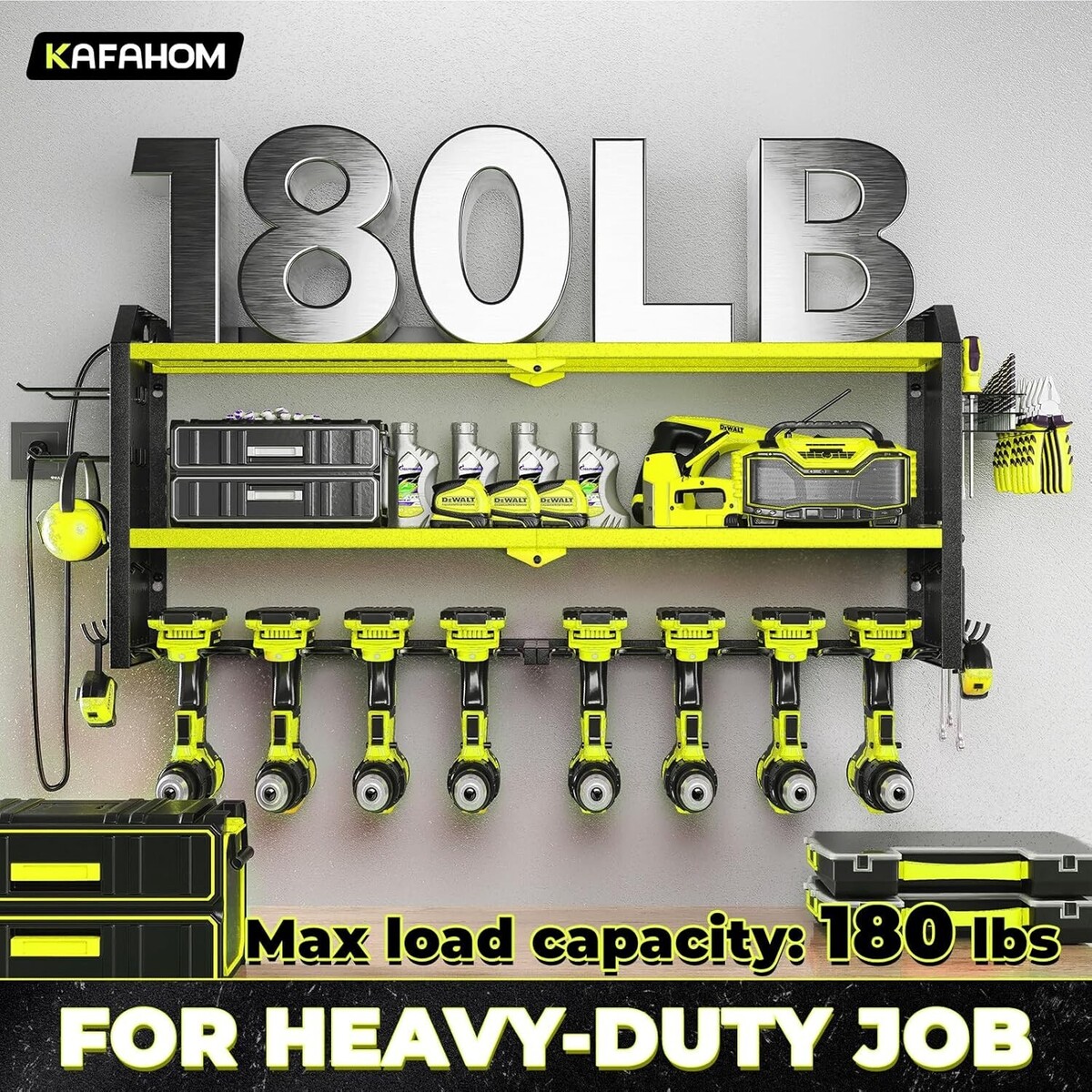 Robust Construction: Built to last, tool box organizers and storage wall mount features a sturdy alloy frame and reinforced double-layered metal plates for exceptional load-bearing capacity. It's the ideal utility cordless drill holder for a wide range of tools and accessories.