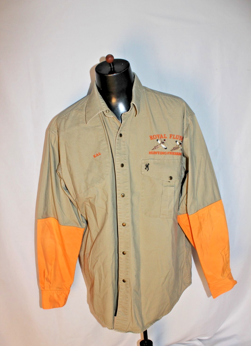 Vintage Browning XL Super Naturals Snap Up Shirt Hunting Royal Flush Hunting Preserve