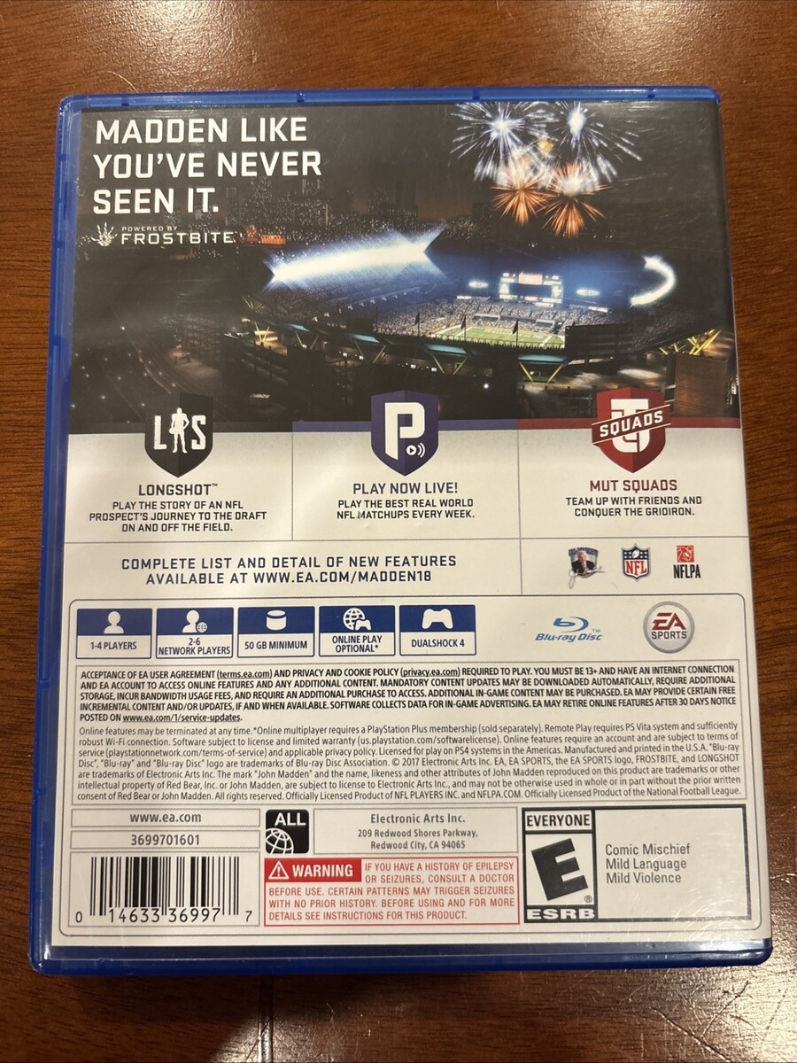 Madden Nfl 18 Sony Play Station 4 PS4 Tom and 50 similar items